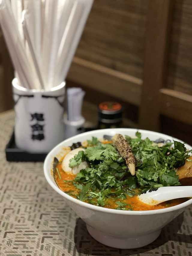 This is a ghost golden stick🤩 I wanted to try it when I was in Australia😍😍 Ramen with spicy soup🍜🌶 Very challenging The restaurant is very lively, less than seven o'clock are Bar tables are already full 🧐😮 💨 When I came to remind myself to eat to be careful not to make a shirt 🤣 However, a table is equipped with an apron 🤩 very courteous ah Coriander Spicy Miso Ramen $125 (Miyu +$15) He for a coriander control, of course to try this coriander spicy miso ramen 😍 And the hempness and spiciness I chose small hemp, medium spicy 🌶🤩 challenge, first ramen noodles a lot of 😍 coriander noodles full of brocade on the ramen 🍜🌿🌶 Color rich, appearance is very attractive First of all the soup is rich, coriander for rich miso soup with a little fresh feeling 😌 Next time to try the big spicy Incremental Char Siu Spicy Miso Ramen $145 (Miyu +$15 Onion +$15) My boyfriend is a carnivore, so the first thing he saw was this incremental char siu spicy miso ramen 🥩🍖🌶🍜 Small, spicy 🤩 The portion of incremental char siu is really super big 🤩🤩 Fat, but my boyfriend loves to eat 😍 Miyu cooked just right The egg yolk is dark orange, egg flavor is rich Coke $15 Hot ramen with iced cola, a very satisfying meal #localtour #hongkongfood #hkfoodie #hkfoodshare #hkfoodshare #hkgirl #camera eat first #food #foodie #Tsim Sha Tsui #Tsim Sha Tsui Good Food #Tsim Sha Tsui Ramen #Tsim Sha Tsui Restaurant #Tsim Sha Tsui Food #Tsim Sha Tsui Food Map #foodie