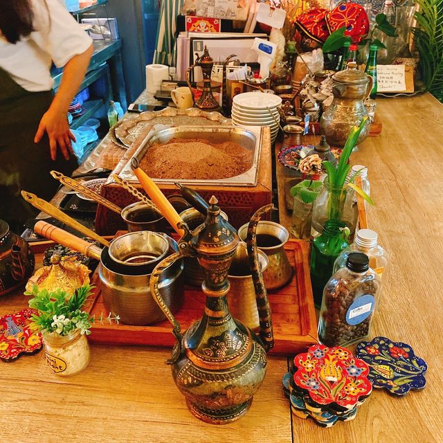 During the holiday, my friend drove me to a specialty restaurant in Ma Wan to eat Turkish food and watch the Turkish hot sand coffee workshop. The proprietress Grace and the boss Lanning were very friendly. If they had time, they would chat with the guests and share the people's livelihood, people's appearance, special attractions and food in Turkey. The restaurant has many Turkish-style decorations, such as different Turkish lamps and lots of Turkish pots and coffee cups. The whole store is filled with Istanbul style, and walking in feels like taking a trip to Türkiye. : : : : : : : : : : : : : : :