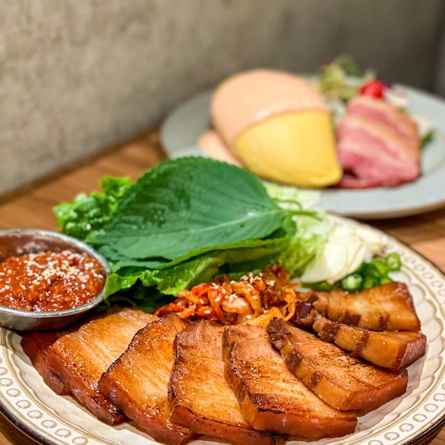 《班禅与厨子》。 Often with friends out will be so looking for some restaurants to eat good food! 🍴Mintaiko Thick Bacon Egg Wrap Rice ($132) This mint flavor is new! See immediately point because it likes to eat! As soon as I arrived, I saw the smooth egg bun rice topped with mint sauce🤩 The whole perception was great! The clerk will cut a line in the middle of the egg bun rice, and then you will see the half-cooked egg flowing out, very healing. The rice inside can choose beef rice / white rice ~ I chose the former ~ In terms of taste, the eggs really have egg flavor and very smooth, sandwiched with rich beef rice together to eat very good, and the smoked meat is very large, but a bit greasy ~ 🍴Grilled Sauce Black Pork White Cut Meat with Da Sauce Lettuce ($182) The color of the black-haired pig is beautiful, and the presentation is excellent But very fat, very fat 🤣 I would want to wrap a lot of lettuce to eat 🤣 can fold garlic slices, chili flakes, kimchi and big sauce together! But it is recommended that people who are not heavy taste should not put too much sauce🙈 I did not know the first time I put a lot of results very salty! 🍴Korean Cheese Boneless Fried Chicken (half, $128) As soon as I arrived I could smell the strong cheese flavor! The advantage of boneless is that it is very convenient to eat ~ Each chicken piece is dipped in cheese powder - and sweet sauce, it tastes like eating Korean fried chicken and french fries and year cake -! 🍴Basque Cheesecake ($45) Although his name is Basque, But actually I think it looks more like cheesecake! I quite like the cream on top to be beaten very lightly, the cake is soft and hard, the portion is not large for dessert after meals is perfect! 🍹 Midsummer White Peach Soda ($42) 🍹 Red Bean Fresh Milk ($42) He is doing a white peach feast and is going to order it to try! #wehungryweeat_Causeway Bay #wehungryweeat_Korean cuisine #hkfoodie #hkfoodblogger #hkfoodshare #hkfoodblog #hkfood #hkkol #korean food #food review #photo #mobile food first #restaurant recommendation #eat good food #causeway Bay food #Hong Kong #korean #koreanrestaurant #fried chicken #egg rice #white peach #coffeetime #summerfood recommendations