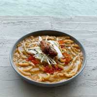 This restaurant is themed after the cartoon character "Kitaro" designed by the owner🧑🏻‍🎨Kitaro with its massive stomach, devours a variety of Korean and Western Fusion delicacies🇰🇷 💗 Salmon Caviar Cream Sauce Udon ($188) The udon is smooth and smooth, with plenty of onions and fresh salmon seeds, cooked with rich homemade seaweed cream sauce, very juicy, but slightly greasy and salty 🍝 The top is placed on fresh seaweed, the taste is smooth and sweet, and finally decorated with onion 🟠 💗Cheese Spicy Chicken Set ($138) Boneless fried chicken is fried crispy on the outside and tender on the inside, wrapped in Korean spicy sauce, the taste is rich and spicy, stimulating the appetizer 🌶 served with iron plate cheese, soft cheese, neutralize the spicy taste 🧀 💗Fried lunch meat strips with cheese sauce ($68) The lunch meat is fried dry and not greasy, and the cheddar cheese sauce is rich and savory🐷 💗 Litchi Oolong Tea ($48) Oolong tea is quiet and fragrant, with a sweet and refreshing litchi flavour, and finally topped with fresh litchi🍹 Taste Index: 😋😋😋😋 Food value index: 💲💲💲💲 Environmental Index: 😍😍😍😍😍 💰Average spend per person: $101-200 📍Kinabaji Korean Cafe and Restaurant Shop LCX34, 3/F, Harbor City Maritime Building, 3-27 Canton Road, Tsim Sha Tsui #LocalTour #SceneryRestaurant #foodie #HongKongGood Places #SummerFoodRecommendations #SummerGood Places