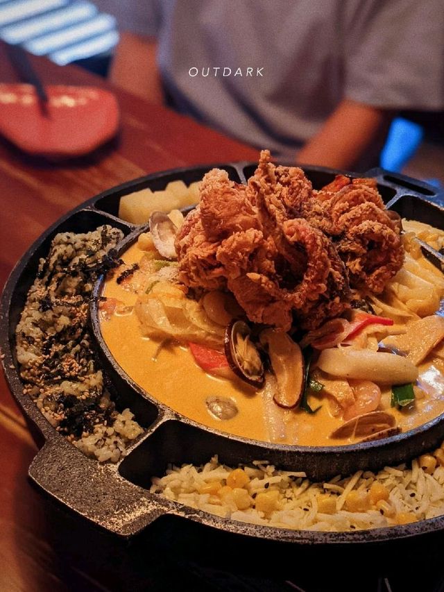 —— 𝙊𝙪𝙩𝙙𝙖𝙧𝙠 🐣 Evil Brunchie on the weekend afternoon! 치킨이 최고야💓 Holidays are all about being wild! For Lin Chi Lin evil things are no time to eat You can eat a little evil at lunch 😗 (Boda mode) The representative of evil is not without fried chicken😈 Although Outdark has been open for a long time, I have never eaten it once😳! Entering is like going to night the whole ceiling is filled with star pendant lights to create the feeling of starry sky It felt like I went to Korea for supper🕺 The atmosphere was good 🐣Half Garlic Honey Fried Chicken ($118) Finally, I can eat a restaurant with Korean fried chicken The chicken is boneless, the meat is tender and smooth, and the fried flour is not very thick The sauce is just right, not too much or too sweet✨ In addition to fried chicken, there are also fries fried quite crispy and quite tasty Creamy Seafood Fried Year Cake ($328) The portion is super plentiful in the middle is with special cream to cook fried octopus, shrimp, marble, year cake, fish cake, vegetables And on the side came corn buffalo cheddar cheese, seaweed rice, pineapple pieces, fried kimchi The fried octopus is crispy and crispy, and fried very tasty. The fried flour is not thick It goes well with special cream and seafood This year cake is the most soft I have eaten in so many Korean restaurants in Hong Kong 👏👏 good good good Spicy fried pork is worth eating a lot of cream seafood is worth a try✨ 🍹蓝柠檬水($34) Sweet and sour is quite refreshing Overall the environment/atmosphere/service/food was very good! The portion is big enough to be full 👏 and oppa's considerate service to teach you how to eat 😚                    —— 📍 𝙊𝙪𝙩𝙖𝙧𝙠 (Hou Fook Street) 17/F, H8, 8 Hou Fuk Street, Tsim Sha Tsui                    —— #lamchelin #localtour #hongkonggoodplaces #foodie #tsim Sha Tsui #lamchelin_korean #Korean cuisine #lamchelin_tst #outdark #outdarkhk #summerfood recommendations #romanticdaterestaurants #foodie #I miss #summerplaces