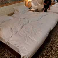 In early October, I saw Trip.com had a discounted package ($1388 for a family room + buffet breakfast and dinner + afternoon tea with ice cream and egg waffles), and with the consumption vouchers, I happily booked and looked forward to it. Unexpectedly, there were two typhoons in a week. Fortunately, my cousin drove us to the hotel and we checked in smoothly under the No. 8 typhoon signal 🙏🏻The hotel staff were generally friendly. The housekeeping auntie who helped with the extra bed was very polite and talkative. I would like to praise her here👍The facilities in the room are relatively old and outdated. The central air-conditioning has some noise and a little bit of stuffy smell. However, this hotel has a certain history and is within the budget. Personally, I just want it to be clean and tidy. As for the buffet breakfast and dinner, there was less food available, and since there were a lot of people, some of the food was sold out. All in all, it's not bad considering Trip.com's promotional price. #ArrivalHotel