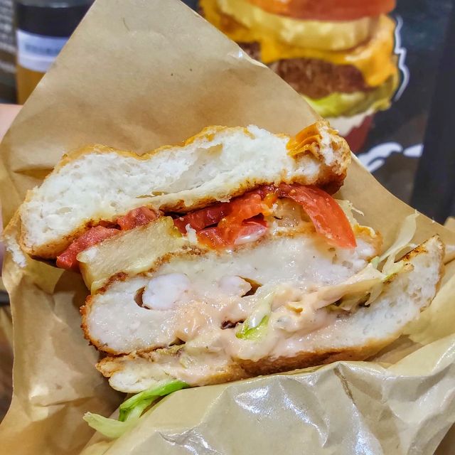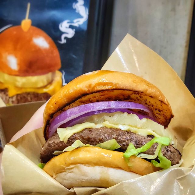 A new burger bun shop recently opened near my office. The enticing aroma of fried food always wafts through my doorstep. It turns out it's a popular, hearty burger place. Two months ago, stage actor Leung Cho-yiu was so impressed when he tried it during a performance in Kwai Fong that he recommended it on a social media post. I've been craving this stuffed bun for a while now, but Kwai Fong is so far away that I haven't had the chance to visit yet. I can't believe they've expanded to East Kowloon so quickly, which just fills a gap in this relatively rare burger bun market. Since I have a long overtime shift tonight, I decided to go and recharge. The clean, sleek facade, with its simple, bold black background and orange lettering, highlights the Hong Kong burger tradition. The full menu is on the right, and the signature dishes are displayed on the left, accompanied by beautiful images. The shop primarily serves takeout. Inside, there are only two round tables and a counter against the wall, seating about eight. The kitchen is right next to it, allowing you to peek in as the chefs prepare the food. The menu is quite extensive, featuring burgers, hot dogs, pasta, and pizza. They also cater to groups of 4-6, so you might consider it for company dinners in the future. American Angus Beef Cheeseburger $98 8/10 A generous portion of the Angus burger! The burger patty was cooked to perfection, the meat was tender and the beef flavor was strong. It was paired with a savory sauce and refreshing pineapple to soften the greasiness. Overall, it was good, though a bit more gravy would have been better. 🤣 Signature Hand-Fried Shrimp Cake Cheeseburger with Thousand Island Dressing $88 7.5/10 The bun was toasted to a crisp, and the Thousand Island dressing and shrimp cake were a perfect match. 😋 The shrimp cake was thick and fried to a nice texture. While not very chewy, it was delicious when paired with the tomato, cheese, and lettuce. Black Truffle Fries 7/10 The fries were fried to order, preserving their freshness and crispness. The black truffle sauce was also included, so they didn't overcook the fries. 🍟 Garlic Bun 8/10 It's rare to see a snack with garlic buns, so I ordered one to try. It was delicious, toasted to a crispy consistency, dry and flavorful, and you could really taste the garlic nuggets. ☺️ Cold Brew Tea 8/10 #localtravel #cafe #foodie #hotsummerdesk