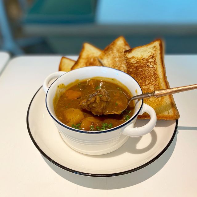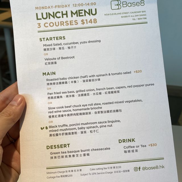 【 We went to the 2/F restaurant and ordered 2 Set Lunch, 3-course $148, including appetizer, main course and dessert. 💎Appetizers: ▫️Mixed Vegetable Salad▫️ Grapefruit juice is sweet and sour and appetizing, a good appetizer🍊 ▪️ Beetroot Soup ▪️ It should have been vinegar, it's sour in the mouth😣 💎Main Course: ▫️Grilled Boneless French Spring Chicken (Half), Spinach Tomato Salad (+$20)▫️ The spring chicken is roasted golden, the skin is very fragrant, the chicken is tender and marinated 🐔 The Baby Spinach with the dish is very fresh 🥬 This pricing is slightly more aggressive 🤔 ▪️Slow cooked red wine braised beef shoulder with assorted vegetables, homemade French cream bread ▪️ The beef shoulder is soft and tender after slow cooking, the homemade brioche is soft and rich in butter 🍞 But the portion of beef is really little exaggerated, mainly sauce🙊 💎Dessert: ▫️Matcha Basque Caramel Cheesecake▫️ There is a surprise basque burnt cheesecake, the cheesecake is soft and creamy, and the matcha is sweet and fragrant🍵! 咖啡或茶(+$30) You can choose $48 or less drinks, can not make up the price difference This is a bit rigid 🤔 ordered a cup of Flat White and Cappucino, a bit disappointed Flat White has latte art. The coffee taste is good, not sure if it comes from the cafe downstairs🤔 。 #cafe #summerfood recommendations #foodie #summergoodplaces