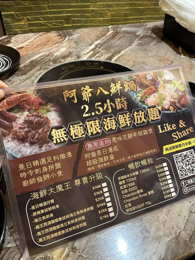 #cassiegomk —— The weather is getting colder. Hot pot is definitely the best choice. If you feel bored after eating too much hot pot, you can try this "Grandpa's Eight Fresh Pot" 2.5-hour unlimited seafood all-you-can-eat. The seafood was surprisingly fresh! 🤤 —— First, the starter is a pot of shark fin stew. The soup is rich and sweet, very nourishing. Then came a very rich seasonal sashimi platter, once served immediately to check in first, super fresh, the Australian lobster head is still moving. The sashimi includes sweet shrimp, lobster, geobush, etc. Each one is very fresh. I never thought that sashimi from a hot pot restaurant can be of such quality! 🦑🦐🦞🐟 —— After the sashimi, we ate the chicken pot with flower jelly and year cake. The chicken is tender and seasoned, the sauce is very tasty, and there are 7-8 pieces of stewed flower jelly, which is very rich. Then it was ready for hot pot, each table had a box of super seafood boxes with super fresh wild lobster, large scallops and two large bacon, still moving. For the hot pot soup, we chose the Yuen Yuen (clear soup and carrot beef brisket). A female waiter taught us not to waste the lobster head. Put it in the soup. It's even better! The first time I had a hot pot, I didn't need to take the sauce and seasonings, because the soup was so fresh and sweet, and it highlighted the freshness of the seafood! There are many ingredients for all-you-can-eat, seafood including oysters, shrimp, shrimp, eel slices and so on. Special recommendations must try the homemade crispy bouncy wontons, black truffle cuttlefish rolls and very hearty chicken intestines. Also add $20 per person for all-you-can-drink drinks, plenty of choices. 🌟 —— Taste Rating ▶️🌕🌕🌕🌕🌕 (5) Affordability Rating ▶️🌕🌕🌕🌕🌗 (4.5) Repurchase Rating ▶️🌕🌕🌕🌕🌑 (4) —— ➡️ Grandpa's Eight Fresh Pot (Mong Kok) 📍 3/F, Tang Shi Plaza, 43H Tang Shi Street, Mong Kok —— IG: @cassiecwy/ @cassiegetfat FB: @cassiegotravel OP:菜系_revolution(Lv4)。 点评:cassiegetfat(Lv6) TripAdvisor: cwycassie #foodie