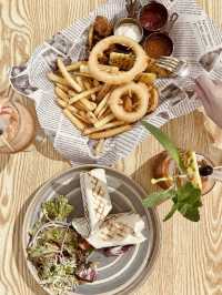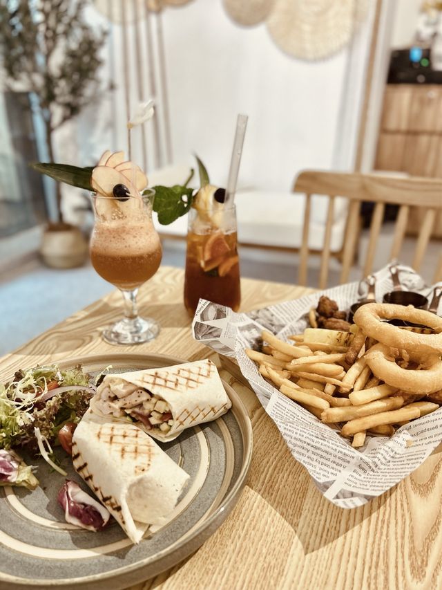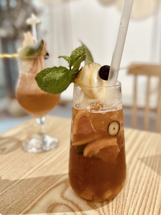 ♥️ A newly opened, semi-outdoor fusion Western restaurant in Kwun Tong. Kudos to the staff! The setting is spacious and comfortable. Inside, there's a wooden table and a swing with a resort-style vibe. Outside, there's a spacious setting with a large, sparkling ceiling chandelier. It's a great place to have a drink! Wide selection of food and drinks: Food options include light meals, snacks, main courses, pasta, risotto, pizza, and a la carte dishes. Drinks include specialty smoothies, mocktails, coffee, tea, and sodas. We weren't too hungry, so we didn't order main courses this time, only snacks and light meals. The food is light and refreshing, not overpowering or processed, and feels fresh and retains the original flavors of the ingredients. The specialty drinks are my favorite! 👍🏻 ⭐️ Chicken Pot Pie with Salad $78: Chicken, tomato, salad, onion, cucumber, and tacos ⭐️ Snack Platter $128: Grilled pineapple, fish cakes, fried chicken, onion rings, and fries ⭐️ Grandma's Secret Apple Smoothie $58 Fresh apple, apple syrup, lemon juice, black tea ⭐️ Orchard's "Three Thousand Life Pills" $58 Mixed fruit, lemon juice, peach juice, black tea *Drink names are so confusing 😆 📍 Fusion Tens Room 201, 2/F, Harbour Trade Centre, 117 How Ming Street, Kwun Tong #cafe#pretendtoineuropean #romanticdaterestaurant #summerfoodrecommendations #foodie #afternoonteatips #hotsummerspots