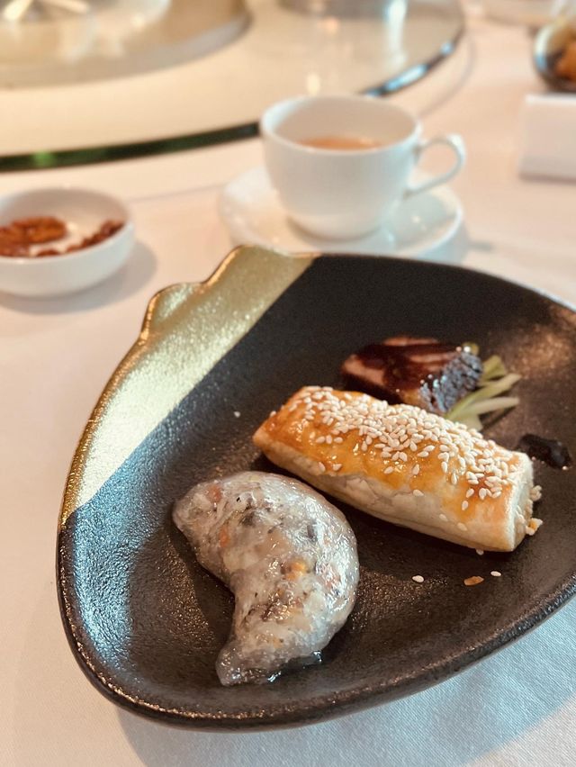 Hotel Icon's rooftop Chinese restaurant, ♥Tian Wai Tian♥, is renowned for its exquisite dim sum. This time, I tried it, and not only was the dim sum high-quality, but I also found the atmosphere to be elegant and modern without being tacky. The large windows offer a stunning view of Victoria Harbour. It wasn't crowded, so it felt very comfortable. Dim sum lunch set $318 Five-spice Angus crispy pork belly slices 👍🏻 Sea urchin and tofu spring rolls, spicy and baked matsutake crisps, and vegetarian dumplings topped with bamboo fungus 👍🏻 Special traditional soup of the day Shrimp and wild mushroom sauce with grouper balls 👍🏻 Ginger and scallion roast duck with sliced noodles Featured Desserts Hoping to try the à la carte dim sum next time~~ 📍Heaven Beyond Heaven 28/F, Hotel Icon, 17 Science Museum Road, Tsim Sha Tsui #aboveandbeyondhotelicon #hoteliconhk #tstfood #tsimshatsuifood #tsimshatsui #Tsim Sha Tsui Food #Tsim Sha Tsui #Tsim Sha Tsui Check-in Restaurants #foodstagram #Hong Kong Food #cafehopping #hkbeautyblogger #discoverhongkong #hkcafe #hkfoodie #hkfoodblogger #hkig #hkgirl #hkbeautyblogger #oodthk #hktravel #Hong Kong Good Places #hkfood #hkrestaurant #hkcafe #hkigers #instadaily