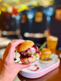 Sip & Slide (Central) Since yesterday's lunch was too rich, last night to lose weight, 2 people share eat a 1 1 person Christmas meal 🎄 Christmas meal $268 for 1 person Although marked for 1 person, it includes appetizers, drinks, desserts, and 2 mini burgers 😋😋 🎊X’mas Starers Sour and refreshing, very appetizing appetizer ~ 🎊BBQ Pulled Pork Mac & Cheese Ready to order 💕 So the cheese is hot melt 😍 inside mix left hand torn pork, then folded with macaroni to eat, very delicious ~ 🎊X’mas Turkey Burger 🍔 with Cranberry Sauce This burger size is very suitable for ladies to eat, will not eat awkwardly, using turkey 🦃️ to make burger steak is very festive, plus sweet and sour cranberry sauce, the taste is very good 😆 🎊 The Mulled Wine Cheese Burger The first time to eat mulled wine burger, the taste is unique, added orange and cheese down, novel yet not lose the original appearance and taste of classic burger ~ 🎊Peach Apple Lemon Tea Made with fresh apples and lemon🍋, sweet and thirst-quenching ~ 🎊Cheesecake Of course there is no shortage of dessert. This cheesecake is not stale at all, and served with blueberry 🫐 jam, perfect ~ *Service charge applies Address: 5/F, Chiang Hing Building, 37-43 Kok Lin Street, Central #foodie #local tour #where to go in December #Hong Kong places to go #resident writer #Hong Kong food