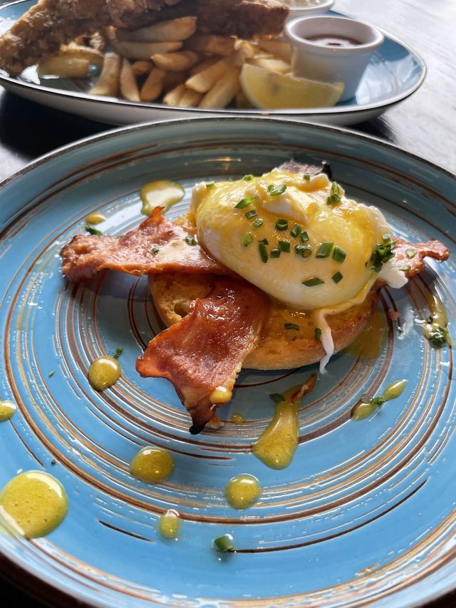 📍【A Tavola Bar & Chill】 Rarely on a few days off the New Year holiday, we chose a restaurant located near the waterfront of Tseung Kwan O to eat. This restaurant has indoor and outdoor seating enough to chill, the decoration is full of exotic style, the atmosphere and environment are enough, like going to a foreign restaurant ♥️ ▫️周末早午餐($248) 🍳Egg Benedicts Appetizers have a choice of eggs Benedict is amazing!! Stick a half-cooked egg yolk almost flow out 🤭 Served with two pieces of bacon 🥓 and the bottom layer of English muffin, is satisfied 🥰 🐟Fish & Chips Two large pieces of fried fish almost twice as long, big to be scared 🫣 The outside is fried to crispy not very greasy, the fish is smooth and juicy, cut open and smoke 🤤 And the portion of fries is very enough, with ketchup and other sauce, 2 people can not finish eating so 🤣 🍰 Cheesecake The cheesecake that comes with the meal, looks ordinary but turns out to eat very soft, very heavy cream flavor, great 😄 ▫️野菌烩饭($168) Served in a large plate, it looks very surging🤤 The sauce is very rich, with wild beef liver mushrooms and fresh herbs, the taste is rich and creamy, the pasta is cooked just right, not too soft and soy sauce🥘 📍【A Tavola Bar & Chill】 📌Shop G08, G/F, MONTEREY Place, 23 Tang Chun Street, South Coast, Tseung Kwan O O 🚇About 10 minutes walk from Exit A1 of Tseung Kwan O MTR Station 🕐周一-周日(12:00PM-12:00AM) #HongKongGood Places #HongKongFood #TseungKwanOFood #TseungKwanOcafe #hkfoodblogger #hkfoodie