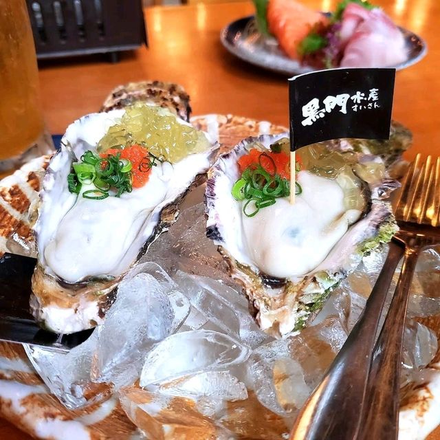 I remember when I went to Osaka in my third year, I made a pilgrimage to Kuromon Market and swept the streets while walking. It was really cool🤩. The border has been closed for two years. I don't know when I can go again😣. I'll have to go to a Japanese restaurant in Hong Kong to relieve my nostalgia. This Black Gate Seafood in Minden Road, Tsim Sha Tsui has been open for a long time. Every time I pass by, I am attracted by its strong Kansai style. It is decorated like a Japanese izakaya, and is decorated with many Japanese lanterns and shells, playing Japanese pop songs full of energy. ❤ Iwate Akasaki Oysters ($156/2) Although the price is not cheap, but the quality is very high, looks already large and full, eat the meat plump and sweet 💕, and a little jelly grains, as an ingredient, rich taste. ❤ Salmon sashimi ($58), oily fish sashimi ($88) Ordered two sashimi, I think the salmon sashimi is better, very thick and moderate fat ratio, soft and fresh enough. ❤ Black Gate Crab Miso Koro-yaki ($72) A must-try dish in Japanese bin-yaki, the crab lid is packed with plenty of crab paste, and ingredients such as quail eggs, crab meat, crab roe and spring onions. There is a shopkeeper standing in front of him to burn, the fire hose is just right. Spread the grilled crab paste on top of the seaweed soda biscuits and add fried garlic. It's really delicious😋. In addition, you can just eat d crab paste, more eat its own freshness. ❤ Black Gate Lobster Soup Cooked Seafood ($88) It looks like a small plate, but it's full of ingredients. This is cooked on the stove with help, the lobster soup is very rich, containing oysters, snails, squid, shrimp, mushrooms and mushrooms, all the ingredients absorb the freshness of the lobster soup, after eating and drinking the hot soup, really satisfied🥰. ❤ Butter Grilled Sashimi ($72) Butter and sashimi are really good friends😚, as long as the sashimi is big and fresh enough, the taste is unbeatable😝. And the clerk helps grill and season in front of, ready to eat, smell the butter aroma slowly spreading out, really more and more appetizing the more you look. The sashimi is very thick, juicy and buttery, very good 👍. ❤ Red Oni Ebien Reverse Roll ($158) The fried shrimp are big and crispy, the roll has six pieces, just the right amount for two people to share. The top is covered with crab roe and caviar, it looks very attractive, the sushi rice is already seasoned with soy sauce, add a little wasabi, no need to order soy sauce is very tasty 😋. ❤ Grapefruit Draft Beer ($68) Bin-yaki and grapefruit beer are a perfect match. A mouthful of hot food, plus a mouthful of fresh-tasting beer🍺, happiness is that simple🥰. The grapefruit flesh is sweet and neutralizes the sweetness of the draft beer, making it very easy to enter. ❤ Rose Plum Wine ($58) This is a very sweet glass of plum wine, with a light rose fragrance 🌹, both the color and taste seems to meet most ladies tastes. 🏠Black Gate Seafood すいさん Shop 3-4, G/F, 8 Minden Road, Tsim Sha Tsui #izakaya #Hamayaki #Japanese cuisine #Minden Path #Kuromon Seafood すいさん #Tsim Sha Tsui