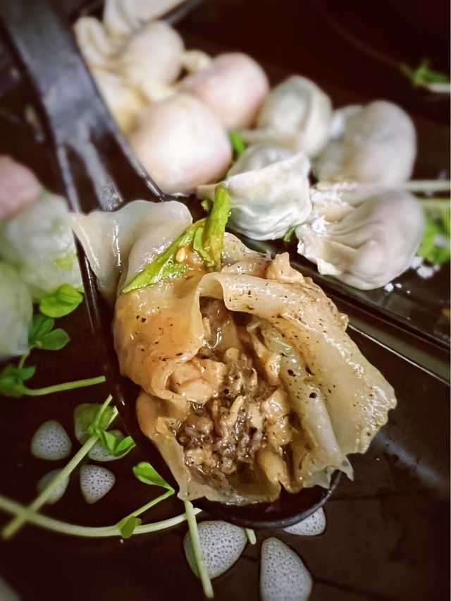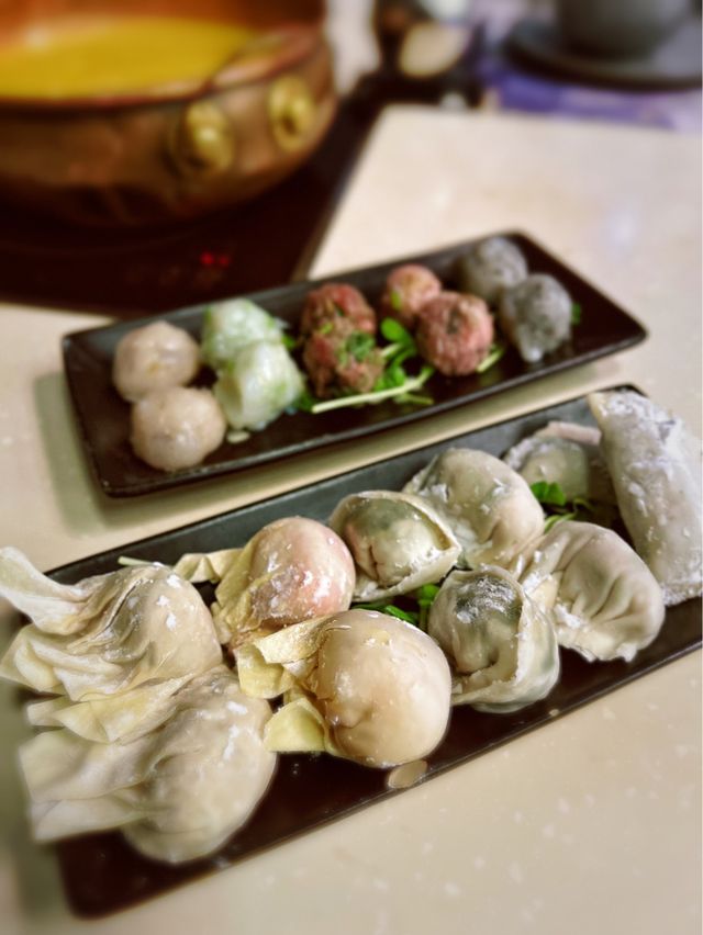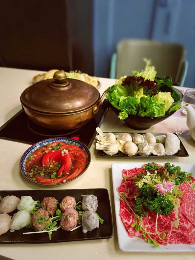 🐔 Pepper Pork Belly and Mulberry Chicken Hot Pot $328 The second visit to Zui Hu Fu, is for this hot pot soup, super fresh and sweet and full of MSG-free pepper pork belly jade chicken soup, before starting the hot pot already drank two bowls 🤭 chicken skin soft and tender, almost half a chicken 🤩 The cabbage absorbs all the pepper flavor and is very rich. The whole pot of golden soup is the essence of hot pot🥹 I'm already half full before the hot pot starts😂 🍅 Japanese Japanese Tomato Salad $58 Fresh tomatoes cut into thin slices dipped into some sour vinegar salad dressing is very refreshing, not a bit of green flavor, very fresh and thirst-quenching 👍🏻 🐂Hand Cut Top Angus Fat Beef (Small) $298 Hand-cut top Angus beef · The meat is tender, not greasy and chewy, the snowflake fat is evenly distributed, the beef flavor is very rich, and the portion is quite a lot 🥟 Dumplings Platter $128 There are five kinds of dumplings in a plate, celery dumplings, leek pork, handmade wontons, XO bacon shrimp dumplings, my favorite is the black truffle crab meat dumplings🦀 a bite of strong black truffle white sauce crab meat assorted mushrooms🤤 🍡 Drunken Hu Fu Wu Treasure Pills $128 Emperor's mussel squid balls🐙 and black truffle squid balls are crispy and bouncy with gelatinous texture, you can see that they really used a lot of squid meat to beat out, not mixed with flour🤤 Hand-beaten scallion fried vegetables beef balls plum pork meatballs have their own characteristics, beef balls are a bit like fresh beef balls 🤔 but the beef flavor is stronger, pork balls plus pickled vegetables like meatballs so very cute 😆 🥬 Vegetable Pinwang (Small) $63 A large plate of vegetables, with lettuce, lettuce, cabbage and baby cabbage, very fresh and sweet portion, affordable 👍🏻 📍Drunk Hu Fu G/F, Bao Fat Building, 20 Constantine Road, Tsim Sha Tsui