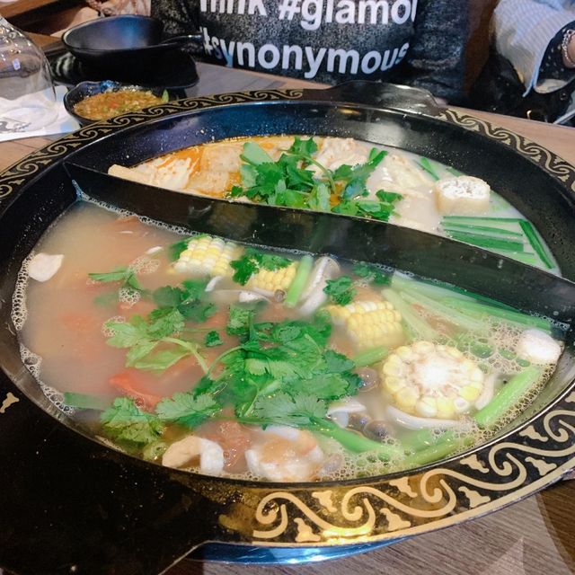 [A hot pot restaurant featuring premium ingredients and secret soup base]