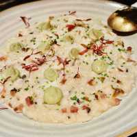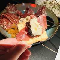 I saw a restaurant called 📚Library online before, located opposite the Tsim Sha Tsui Mosque 🕌️. The outdoor seating can see the Tsim Sha Tsui mosque across the street. Looking out from here, it feels very unHong Kong! The menu here is divided into chapters like a book. The advantage of eating more people is that you can order more food🤤 The 6 of us almost ordered everything we wanted to eat in the whole menu 🤣 Because the food is very exquisite 🤣 more people share is not full! 🍸Preface $90 蔓越莓汁、接骨木花糖浆、蓝豌豆茶、苏打水。 😋 Thoughts after drinking: - Cranberry flavor is heavy but not sour, drinks with elder flower syrup are usually sweet 😍 good drink ~ do not want to drink alcohol choice 👍🏻 🥓Classic Italian Ham & Cheese Platter🧀 $138 😋 Thoughts: - There are 3 hams, 2 cheeses, 2 dried fruits, biscuits and syrup - Ham with cheese and biscuits is great🤤 I like this salty way of eating the most - Or ham with dried fruit tastes good 🥔Homemade Crispy Potato Balls $68 😋 Thoughts: - Very hot bite open with heat, the crust is less crispy, the inside is soft and hot, delicious 👍🏻🤣 more filling snack 🍟French fries with black truffle sauce $68 😋 Thoughts: - Ordinary coarse fries, order black truffle sauce great 🤣 more filling snack, but personally think potato balls more special and excellent 🐖Library Tofu Pork Belly $128 😋 Thoughts: - The staff recommended to eat, the tofu pork belly here is not greasy at all, quite good 👍🏻 - There is a piece of tofu under a piece of pork belly, 6 pieces of ultimatum is just right for 6 of us 🐂 Sealed Beef Fillet with Mashed Potatoes Black Truffle Red Wine Sauce $328 😋 Thoughts: - It looks very attractive and tastes good however personally I think it's a little bit bit 🐽Roasted Canadian Pork Saddle with Mushroom Cream Sauce $248 😋 Thoughts: - The pork saddle is very refreshing when you eat it, the sauce is very crispy, quite tasty🤤 I personally think it's better than beef fillet👍🏻 🐟Stand-up Scale Grilled Horsehead Fried King $228 😋 Thoughts: - Staff recommended to eat, the fish scales cooked to stand up is edible 🤣 eat like eating fried fish skin taste, fish meat and fish meat are good, there is a little stir-fry below 🤤 quite special dish, worth a try 👍🏻 - The cooking time is relatively long, have waited 30 minutes 🍝Peony Shrimp Pasta $218 😋 Thoughts: - This is a dish that is not on the menu - A little spicy quite wild, peony shrimp meat is very firm, the portion is relatively small 🍝Spicy Oyster Spaghetti $188 😋 Thoughts: - There are 8 pieces in one, beautifully arranged, a little spicy very fresh taste, personally like this more than the peony shrimp pasta 🍚 Library Peel Egg Pasta $168 😋 Thoughts: - I heard the name is quite special, feel that there should be very little chance to eat outside, so ordered to try - It doesn't look attractive😂 But it tastes quite tasty😋👍🏻 It's a little idyllic, not much of the quail flavor I know, creamy mixed with some bacon together to eat delicious🤤 I remember the quote on the menu here the most: "The characteristics of books and food are the same. There are those who are addicted to them, and those who taste them slowly and then try their true taste..." We were all immersed in this library all night! 📍Library Restaurant and Bar Address: 3/F, Vinson Building, 74-78 Nathan Road, Tsim Sha Tsui #Tsim Sha Tsui Food #Tsim Sha Tsui Western Food #LibraryRestaurantandBar #foodblogger #hkfoodie #foodiehk #foodblog #yummyfood #foodie