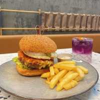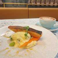 This cafe has been famous for its signature strawberry watermelon layer cake🍉 The cakes come in a variety of flavors, as well as gluten-free keto cakes for vegetarians In addition to cakes, Tseung Kwan O Popcorn also offers salads, pasta, burgers and other options Let's go and try it during the holidays~ There is Brunch Meun🍽️ on holidays Includes soup + main course + dessert + drink $188 The tea soup will change according to the ingredients, the soup of the day is a cauliflower cream soup The cauliflower has a rich flavor and is not too thick It has a light creamy flavor😌 It doesn't taste as full as ordinary cream soup 🍴Seared Salmon Eggs Benedict with Mustard Butter Sauce A whole piece of salmon sauteed and placed on top of the butter mashed potatoes The salmon is fried until the skin is crispy, the meat is tender and rich in protein🐟 The butter mashed potatoes are so fragrant~ They are smooth and smooth, and go best with eggs Benedict 🍴Australian Charcoal Wagyu Burger with Black Truffle French Fries The Wagyu burger is very thick 🍔 In addition to the thick Wagyu steak sandwiched in the middle, there are also cucumber, lettuce, tomato and cheese The cheese is half melted and blends perfectly with the tomato sauce and wagyu steak The wagyu steak is juicy, rich in beef flavor, very satisfying🤤 The black truffle fries are of normal standard, crispy and delicious, and taste better with black truffle sauce 🍰 Pineapple Cheesecake The cheese feels light but the flavor is prominent, a layer of sponge cake, a layer of cheese and a layer of pineapple slices 🍍 very rich taste 🍰Keto cocoa cheesecake The keto cake is thicker, the chocolate flavor is super rich 🤣 Chocolate lovers must try it! ☕️Mocha The ratio of chocolate and coffee is just right, the latte art is thoughtful~ 🍹 Butterfly Pea Lemon Soup Power The color of butterfly flowers is really beautiful with fresh fruit🍋 The taste is sour, lemony and feels fresh! LIFETASTIC BISTRO Shop G19, G/F, PopCorn Shopping Centre, 9 Tong Hin Street, Tseung Kwan O #VeganCake #GlutenFreeCake #FreshMadeDaily #SummerFoodRecommendations #foodie