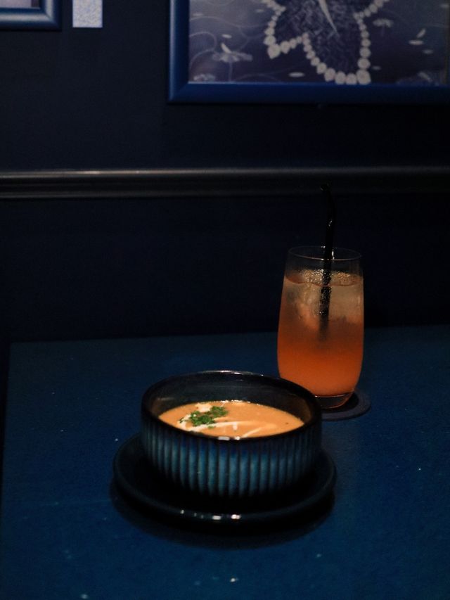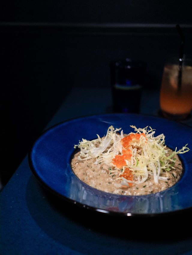 MONMONO is a high-end Japanese-French fusion restaurant and wine bar, with a noble blue decor both inside and out. It features a signature CASINO photo spot, where you can even climb up and take a photo inside the car. 🥰 · We tried the 6-course dinner for two ($988) tonight, which started with two glasses of welcome drinks, alcoholic or non-alcoholic, your choice. 😚 · 1️⃣ Rich cheese baked oysters The cheese flavor is rich, and the oysters are slightly runny even though they are cooked, not hard. They are baked just right, not overcooked, and the texture is creamy with a delicious oyster flavor. 🤤 · 2️⃣ Chef's recommended salad 3️⃣ Daily selected soup 4️⃣ Salmon roe, soft shell crab and crab meat risotto The risotto is cooked perfectly, with each grain distinct and not mushy. It also has a lot of crab meat and crab roe, which gives it a super rich crab flavor. · 5️⃣ Low-temperature slow-roasted 16oz US Angus sirloin 6️⃣ Blueberry milk pudding The milk pudding has a smooth texture, and is paired with strawberries and raspberries for a sweet and sour taste that makes you want to have more than one cup. 🤣 ⋯⋯⋯⋯⋯⋯⋯⋯⋯⋯ MONMONO @monmono.hk 📍Shop 2-3, G/F, Heng Seng Commercial Centre, 4 Hillwood Road, Tsim Sha Tsui 📍Shop A & B, G/F, 44-46 Staunton Street, Central ⋯⋯⋯⋯⋯⋯⋯⋯⋯⋯ #MONMONO #TsimShaTsui #TsimShaTsuiFood #HongKongFood #hkfoodblogger #foodie #LocalTravel #HongKongAttractions #hkfoodie #hkfood #travel