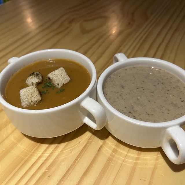 A friend who lives in Tai Po said he wanted to try this shop. He said he always saw people queuing up when he walked by. This time we decided to come earlier for dinner ❤️ 🔎 Meal for one person ($148) Available only at 17:30 on weekdays (Monday to Friday), this time I ordered 2 one-person meals with my friends 💝Salad or Western soup ▪️Slow Cooked Chicken Breast Caesar Salad ▫️Smoked Salmon Caesar Salad ▪️Chef's selection of concentrated soup ▫️ Secret French Lobster Soup (+$18) 👆🏻Choose 1 of the above 4, my friend and I chose the Chef's Selected Soup and Secret French Lobster Soup (+$18). Mushroom soup: It tastes full of mushroom flavor, smooth and smooth~ Secret French Lobster Soup: The seasoning is not too salty, and it has a rich lobster flavor🦞~ 💝Handmade pasta/pizza/snacks There are 8 different Main dishes to choose from, my friend and I chose the following 2 ❤️ ▪️ 63°C Poached Egg Carbonara Pasta Carbonara is full of cheese and egg flavor, the pasta is handmade pasta🍝, it tastes bouncy and very juicy. ▫️ Pan-fried Australian Angus Sirloin Steak with Potatoes (+$68) The sirloin steak is called Zuo 7-ripe, and it tastes like juice and beef~ Mashed potatoes are creamy, smooth and smooth ❤️ Free one cup of basic drink or half price upgraded specialty drink with all packages 💝 Butterfly Blossom Strawberry Milk (Original Price: $36) This cup is super beautiful, layered, very igable❤️ The strawberry flavor is quite strong🍓 💝Black Sugar Red Tea Fresh Milk (Original Price: $36) The black sugar flavor is fragrant, and the tea and milk flavors are very balanced And not too sweet ❤️ 💝 Featured Sale Snacks Each package is limited to one purchase, my friend and I chose our choice of sauce pastry fried chicken wings (+$58), sauces include tom yum or honey grapefruit ~ The chicken wings are fried crispy and served with sweet honey grapefruit sauce, which goes very well 👍🏻👍🏻 秘️Additional 10% service charge applies ❣️Homeland @homeland.kitchen 📌 G/F, 2 Tung Chang Street, Tai Po #foodie #hkfoodie #hongkongfoodblogger #hongkongfoodie #hkfood #hkfoodblog #hkfoodblogger #camera eat first #hkfoodblogger #hkeats #852food #852foodie #foodblogger #hkfoodielife #foodiehk #taipofood #taipowestern food #homeland #handmade pasta #HongKongfood
