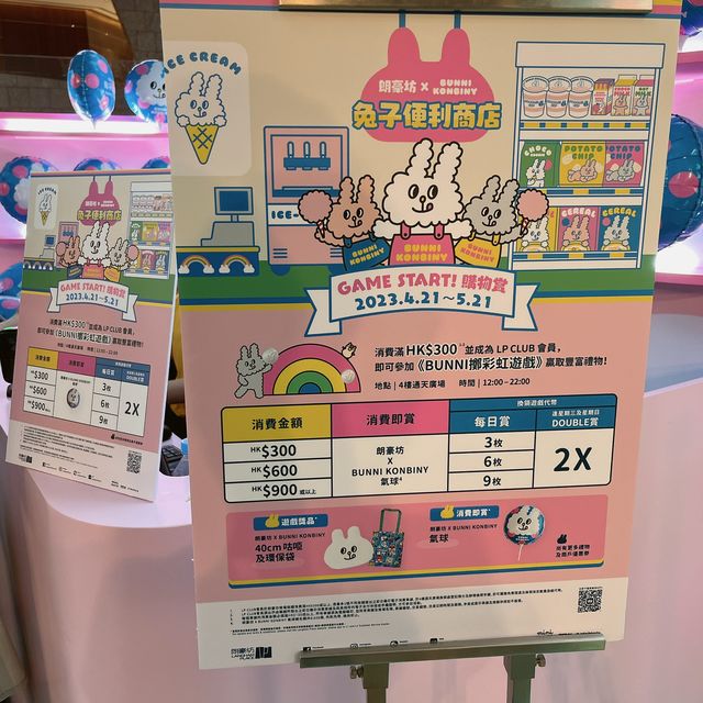 Recently, in addition to the care Bears popup store on the 12th floor of Langham Place, the "BUNNI KONBINY Rabbit Convenience Store" in Tong Tin Plaza on the 4th floor has also been able to attract a large number of fans to check in. The three cute rabbits run a convenience store together, including the hard-working owner Mayo, the shopkeeper Mogu who likes to make eggs, and the friendly Meme. There is also a childlike bunny rainbow throwing game. Customers who spend $300 and join as LP CLUB members will enjoy free benefits and redeem game tokens to participate in the game and win “BunniKONBINY limited gifts! #Langham Place #Holiday Good Places #Photo Good Places