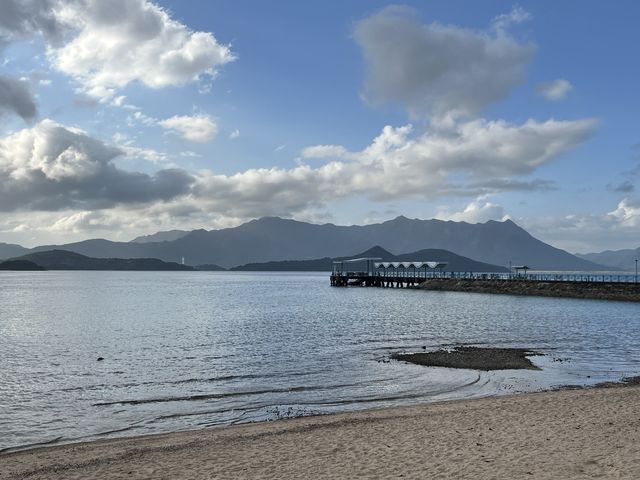 #Wu Kai Sha Beach was once selected by CNN as "the best beach in Hong Kong to enjoy a romantic sunset". From here you can see Sam Mun Tsai, Ma Shi Chau, Pat Sin Leng⛰️ and the Guanyin statue of Tsz Shan Monastery in Tai Po. 🧭Transportation: From Exit A of Ma On Shan Station on the Tuen Ma Line, walk through Ma On Shan Plaza and walk towards the #Ma On Shan Promenade for about 6 minutes. 📷Check-in location: Walk eastward from the promenade, you will pass #Wu Kai Sha Rocky Beach, #Wu Kai Sha Pier and finally arrive at To Tau Wan Village. The three locations here are relatively open, and are definitely the best locations for taking sunset photos🌄