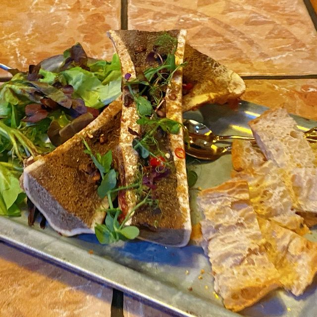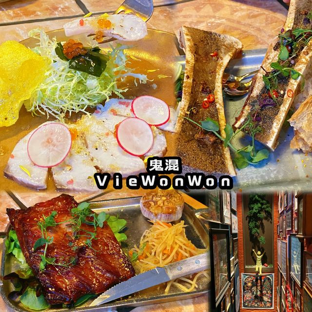 This is sooo vie-won-won~~ 😈 The restaurant is two floors, located next to the University of Hong Kong Station, the atmosphere is like a mysterious manor, you can see it filled with large and small funny decorations, there is a book of answers on the table, you can play with friends, quite interesting 😏 Carefully look at each decoration is interesting, you might as well visit before eating ☺️ 😇Roasted Grain-Fed Beef Marrow with Bread Taking about 20 minutes, beef bone marrow is a mixture of fat and protein, with a soft, creamy meat and prominent aroma, served with toasted bread, rich in protein, dietary fiber. The two big beef bones are very attractive, and the European bread is crispier than usual. 😇 Oil-grilled oily fish thin slices Japanese fushion dish, the grilled oily fish covered with caviar, although the portion is not much, but relatively exquisite, outstanding taste, slightly spicy make the dish more appetizing, with seaweed and salad vegetables, fresh and healthy. 😇Slow Cooked Spanish Pork Ribs (Half) Highly recommend the slow-cooked pork ribs, the meat is quite soft and tender, and the crust retains the aroma of grilling, the pork in Spain does not have a bit of fishy smell, the marinade is also very tasty, mixed with different sauces, different from the usual barbecue sauce, a taste unforgettable. Also ordered a glass of prosecco🥂, sweet sparkling wine is perfect for girls to taste. 🐷🛎️Must-try index: 9/10🔆 📍Address: G/F, 8 South Lane, Western District #wingwingpiglife #wingwingpig_saiwan 🅆🄸🄽🄶 🅆🄸🄽🄶 🄿🄸🄶 🄻🄸🄵🄴 #viewonwonhk #highlyrecommended👍 #hkgoodfoodblog #foodiefinder #niceestaurant #saiwan
