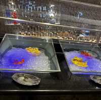 #Hotel Buffet Located at (8) Degree Harbour Plaza Hotel, Cafe 8 Degree is located on the basement level to the right of the main entrance. The most famous dessert in this city is the Mango Napoleon dessert. Because it is a semi-buffet, the main dishes are rich: Hainan chicken, sushi platter, lamb rack, steak restaurant atrium; the semi-buffet includes Chinese and Western soups, fruit salad, bread jelly candy, osmanthus cake and cheesecake, strawberry cake and mango Napoleon. Mango Napoleon is definitely the signature of this hotel!