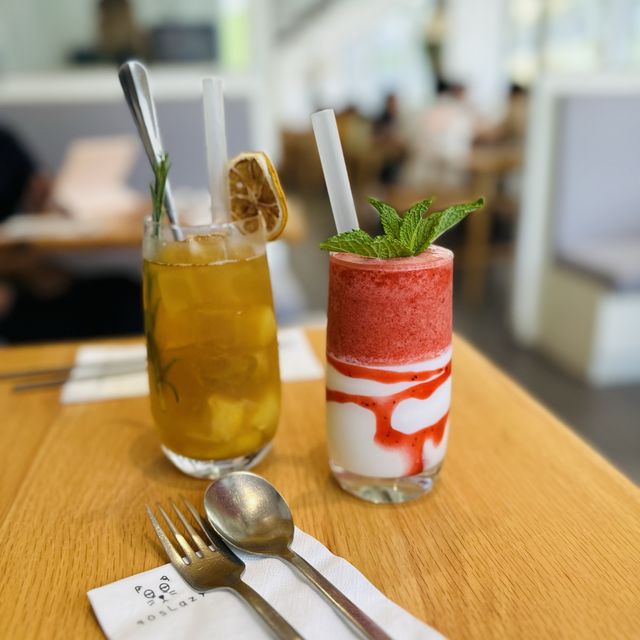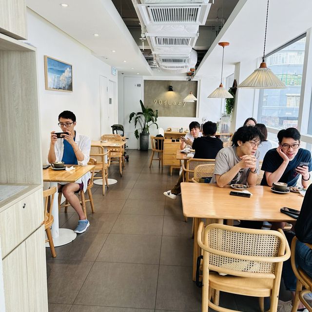 This front row has been attracted by the name of his place, 90‘s Lazy!! ️🤣🤣 Then book mark down must find another day to try 😋 In addition to the big characters 90’s Lazy, their door sign also looks like a very sleepy cat pattern 😍😍 very cute The restaurant is located on the second floor upstairs, hipster style, quite comfortable to sit 😌 We went because it was Saturday, so no lunch set, I saw their weekday lunch set is a few tens of dollars to deal, quite affordable! ️I have to try again next time🥲 Gillette Pork Rib Burger Japanese tonkatsu burger Usually eat beef burger, this time let's try the pork chop, I didn't expect it to be quite good😋 The pork chop is very crispy and tender, with tomatoes and lettuce, reducing the greasiness of the pork chop👍 Also want to mention that their bread is very fragrant🤤 Spaghetti with spicy garlic sliced ​​clams Spaghetti alle vongole The garlic slices are very fragrant, plus the spicy seasoning, making the mussels and pasta super tasty, making people eat 🤔 stop eating, great 😆 Chocolate Molten Lava Cake Chocolate heart tart with ice cream Freshly made, very exciting 😚 And the shape is cute, at first glance quite like Mount Fuji 😂 The chocolate is super rich in entrance, the accompaniment is ice cream, cream and fruit, very plus 😍 Pineapple jasmine tea This cup is limited to a limited time, the shape is very attractive, I love the dried lemon on the side of the cup🤩 Pineapple and jasmine, sweet and sour and full of fragrance💯 Strawberry Very girly drink, bright and eye-catching color 😍 sweet and rich in the mouth, recommended 👍 📍90s Lazy (Shandong Street) (Mong Kok) 1-2/F, 50 Shau Tung Street, Mong Kok #popular #popularrestaurant #foodrecommendations #mongkokfood #hongkongfood #yummy #relax #cafe #mkfood #hkfoodie #90slazy