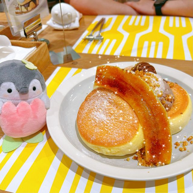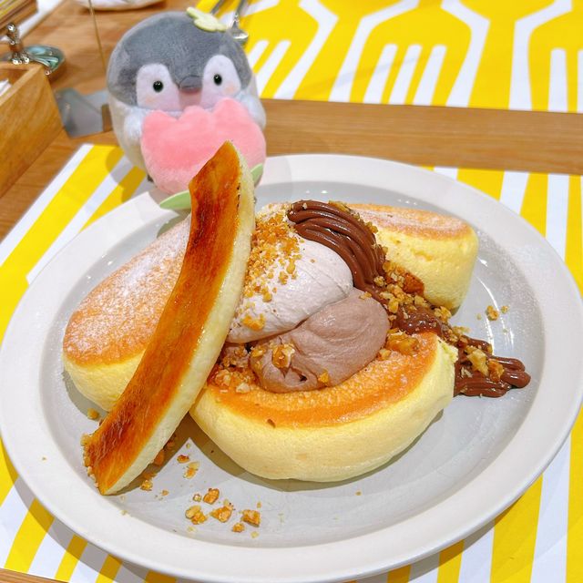 Chocolate Banana Pancake Appearance: 🐧🐧🐧🐧 Taste: 🐧🐧🐧🐧🐧 There are three thick and soft soufflé pancakes, with thick layers of original and chocolate flavored cream on the surface, and chocolate hazelnut paste pouring down like a waterfall, which is very worthwhile. The soufflé pancake has a light, soft and airy texture. The egg batter and sugar are well blended, giving it a rich egg flavor with a hint of sweetness. Paired with smooth and fragrant cream and hazelnut paste, the flavor is more layered and highly recommended. 🐧❣️The restaurant also provides mini versions of light meals, so that guests can order according to their personal appetite, which is very considerate❣️ Environment: 🐧🐧🐧 The restaurant has a simple and stylish design, bright and refreshing lighting, and wide and comfortable seats and tables. 🐧❤️Conclusion: The taste and texture of the Soufflé Pancake are perfect, a must-try recommendation. 🐥🐥🐥🐥🐥🐥🐥🐥🐥🐥 Restaurant name: FLIPPER'S Restaurant address: The ONE i.t orange forest, 100 Nathan Road, Tsim Sha Tsui #souffle #souffle #dessert #Hong Kong food #hkfood #Tsim Sha Tsui food #tsimshatsuifood #hkfoodie #foodie #foodiehk #foodie #foodie #foodieporn #foodphotography #camerafoodfirst #positiveenergypenguin #koupenchan #コウペンちゃん