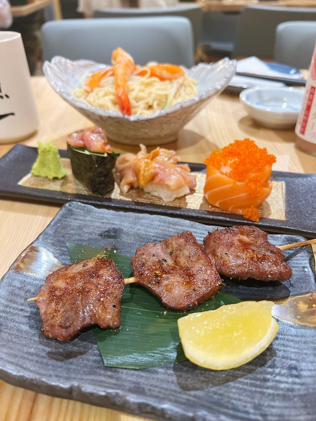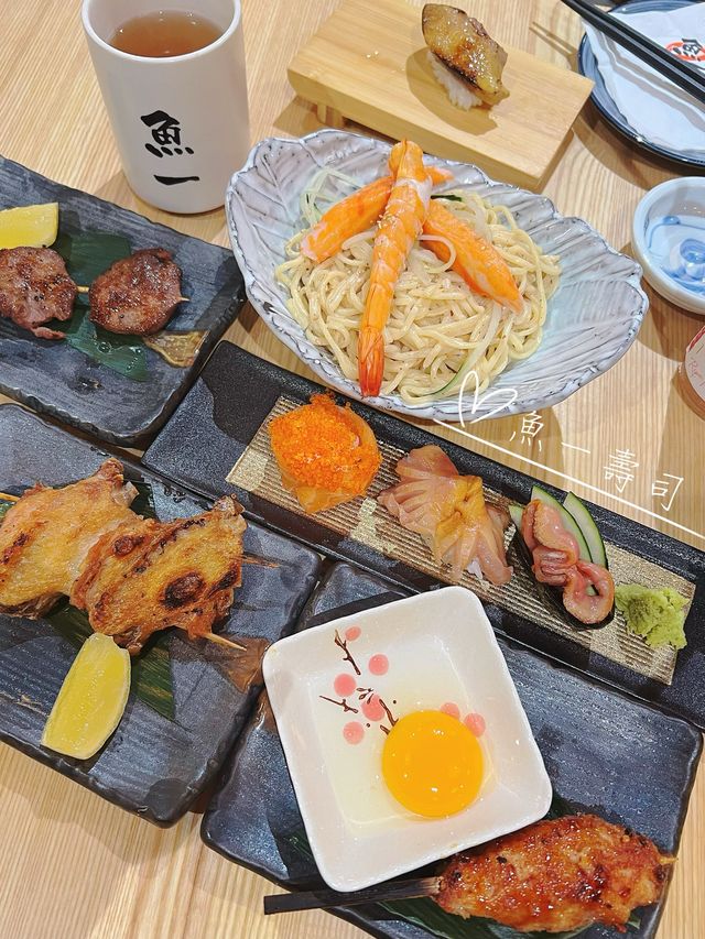 I have eaten at this popular Japanese restaurant several times before in Yuen Long, famous for its good value for money. This time I finally settled in Causeway Bay. I'm so happy! It will be very convenient to eat after work in the future. The restaurant is exquisitely decorated and bright, attracting many customers with its cost-effective Japanese cuisine. No wonder it is very busy on weekdays, and there are still many people waiting for a table at 8pm Highly recommend 💯 Caramel goose liver sushi, goose liver is not too thick, the outer layer is grilled to crispy caramel, goose liver melts in the mouth, the whole mouth is full of grease, very tasty ~ live red mussel sushi is also good very fresh, fresh and refreshing; I also ordered some skewers and cold noodles, all grilled to order, served hot ♨️ minced chicken sticks inside 𥚃 with grains of chicken cartilage, dipped in smooth fresh eggs, moist and rich; beef tongue skewers each piece is very thick, very bouncy; chicken wings skewers crispy skin, tender meat; sesame sauce cold noodles portion is quite large, great satisfaction ~ Fish One Sushi | @sakaraichisushi 📍Kyoto Plaza G/F, 491-499 Peak Road, Causeway Bay ☎️(+852) 28902918 •♡•♡•♡•♡•♡•♡•♡•♡•♡•♡•♡•♡• #Fishisusushi #sushi #sashimi #caramel goose liver sushi #chicken sticks #sesame sauce cold noodles #japanese cuisine #izakaya #value for money #causeway Bayfood #causeway Bay #what to eat in Hong Kong #hongkongfood #hongkong #popularjapanesefood