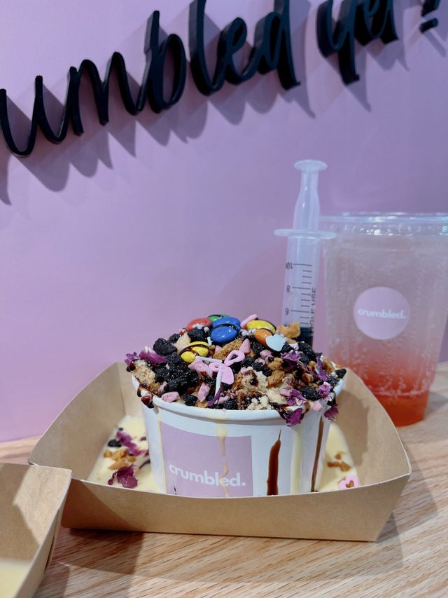 Hong Kong-style Chinese-style Taiwanese sweets are tired of eating🤨 Curious not to eat British style exactly what the taste is the whole shop is pink very beautiful strong IGABLE ❣️𝒞𝑅𝒰𝑀𝐵𝐿𝐸𝒟 𝒮𝐸𝒯 𝐸 $58 Topping put M&M chocolate + OREO crumbs + LOTUS scones + signature CRUMBLED crisp looks colorful and beautiful 🤩 The syringe is filled with chocolate sauce before eating before squeezing down the overall taste is richer As for the base used homemade signature English cheese with yellow peach shopkeeper explained that Hong Kong is generally not as high in sugar as European and American food ☺️ After improvement and adjustment, the use of yellow peach instead of sugar soaked apple is relatively lighter and more in line with Hong Kong people's taste ❣️ Pscissus Passion Fruit Special +$20 This time I ordered two drinks are summer as fruit rich passion fruit aroma plus 7up strong foaming 🥹 the whole set to eat super satisfying ❣️𝒞𝑅𝒰𝑀𝐵𝐿𝐸𝒟 𝒮𝐸𝒯 𝒞 $58 This topping put two KIT KAT chocolate bars + OREO cookie crumbs + mini cotton candy + signature CRUMBLED crisps sprinkled with glitter sprinkled with caramel sauce 😌 The whole cup feels very Girly strong Valentine's Day vibes The bottom is also cooked with homemade signature English cheese softened yellow peaches edible sweet super mites I highly recommend this cup 😚 ❣️Pineapple (Pineapple) Pineapple Special +$20 Slightly sour pineapple🍍 neutralizes the sweetness. It's just right to eat and drink, plus the excitement of soda water. I didn't choose wrong                  —— 🫧Crumbled G/F, Kim Mong Court, 7 Iron Tree Street, Tai Kok Tsui #etlulu Dajiaozui #etlulu Kowloon                  —— #foodiehk #hkfoodie #852food #hongkongfood #bloggerhk #mongkok #hongkong what to eat #eat good food #mobile food first #foodie #tai Kok Tsui food #Hong Kong food #Hong Kong good places #Kowloon food #Tai Kok Tsui good places
