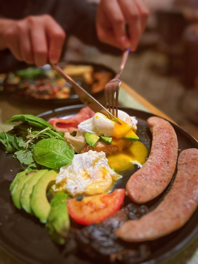 🥓English dry meal $138 + 🥑Half avocado $15 There are brown mushrooms, tomatoes 🍅 pork sausage, bacon, egg and sour toast 🍞 Choose water ball eggs will have two, cut open melted egg yolk to order a sour toast eat very perfect 🤤 pork sausage is quite large, just the all day breakfast is actually enough to fill, but like to eat avocado so added half 🥑 half portion 🍔 Slow Cooked Pork Rib Burger with French Fries $128 The slow-cooked pork ribs are very seasoned and soft, not too tough enough juicy,🐷 matched with bbq sauce and some salad vegetables sandwiched, side dish of French fries are American coarse fries🍟 fried to crispy outside and soft inside just right 🥞French Caramel Pancake $108 A must-order dessert every time I come😋 The three-layer pancake is very fluffy, it's not the Japanese air pancake, this is the American one is thicker and fuller with texture, the caramel on the surface is crispy and then sprinkled with sweet cheese sauce🍮 🍫Iced 85% Chocolate $54 Friends who are afraid of sweet must try this cup, the super strong chocolate flavor is very good, but slightly sweet taste is very smooth🥛 eat and drink will not be afraid to slip 🥂SAUVIGNON BLANG Glass $78 I didn't think this cafe will have alcohol. You can have a glass of wine when you come to eat at night without coffee 👍🏻 📍Urban Coffee Roaster Shop 44, G/F, Meridian Building, Tsim Sha Tsui