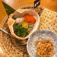 🔍 #Tsim Sha Tsui happybite There are many different small shops and food in the small street near K11 Art Mall. 🚩Nagasakimoto Fishing Pond Fish $198 The restaurant has different seasonal sashimi at every time, and this plate of sashimi is the owner's recommendation. I don't eat sashimi, at most I only eat salmon, but with the encouragement of 👦🏻, I tried a piece, it was really fresh and not very fishy. In addition to slices of sashimi, there are also some shredded sashimi meat that can be eaten wrapped in seaweed. 🚩Black Gate Crab Miso Koro-yaki $78 This dish is really the treasure of the shop. I saw many people recommending it. The crab paste is really rich and creamy🤤. Served with biscuits, the first bite completely shocked the taste buds. 😂 🚩Seaweed Grilled Sashimi $98 Another very fresh seafood grilled dish, seaweed and sashimi are also very rich, two people can eat several pieces. 🚩Black Door Salmon California Counter Roll $128 The salmon is super big on top of the sushi, and very fresh, not only can you fill your stomach, but also eat very fresh salmon raw. 🚩Sikyo Grilled Silver Snapper $188 This silver squid was plump, grilled and delicious, a little crispy sides, and tasted the freshness of the fish itself. 🚩Fried Lotus Root Slices $38 The lotus root slices are very thin, fried crispy, but slightly not hot enough. 🚩Black Gate Seafood Tea Bowl Steamed $88 The seafood in chawanmushi is really rich, with half a piece of bacon, seaweed, caviar, salmon caviar, and the eggs in Benzhong are very fresh. Overall, the food in the restaurant is very fresh, every dish can be tasted fresh, however the price is higher, but the food is real ingredients, worth a try. 💫 Rating: 8/10 #Black Gate Seafood 📍Address: Kuromon Seafood すいさん (Minden Trail) (Tsim Sha Tsui) Shop 3-4, G/F, 8 Minden Road, Tsim Sha Tsui #foodie #restaurant #bitebuddies #hkcouple #HongKonggoodplaces #HongKongfood #foodreviews #hkfoodie #seafood #tsim Sha Tsui Japanese cuisine