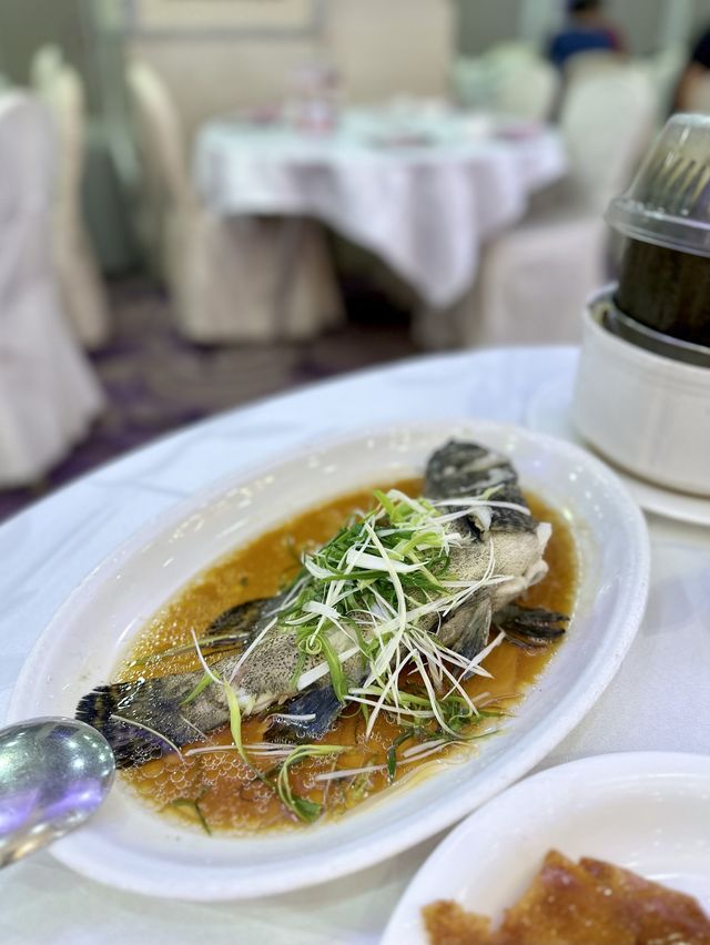 The location of Yu Ming Inn is very convenient. You can see it as soon as you get out of the MTR station😌 I took a look and saw that the dinner three items on the menu were so cheap, so I ordered them all 🌟Sea King Stewed Winter Melon Soup $108 Winter melon cup is a must-eat for summer heat ☀️ The soup is sweet and clear. The whole winter melon is stewed. Only restaurants can eat it! Rich ingredients such as shrimp 🍤, mussels, lean meat, etc Plus the winter melon meat is really very filling😋 🌟Kyoto Sliced ​​Duck $98 The duck skin is crispy and tender. In addition to the duck skin, there is also a row of duck meat to eat🪿 Wrap the duck skin, cucumber 🥒, and spring onion with pie crust and add sweet sauce. It tastes great Eat quickly or it will get cold🤭 🌟Swimming Sabah Trout $108 The Chinese steamed fish in restaurants is my favorite again🥰 Usually steaming fish at home is hard to master the steaming time⏱️ The steamed fish here tastes delicious, the meat is tender and steamed just right 👍🏻 🌟Shrimp Ball Cheese Scrambled Egg Whites $108 This dish is very creative. I have never had fried egg whites🍳 with cheese🧀 The cheese is rich and the egg whites are also fried fluffy and tender It goes well with big shrimp balls to enhance the freshness 🌟Pepper and Salt Cashew Squid $98 The fried squid with salt and pepper is crispy🦑 And it's bite-sized so it's easy to eat Served with cashews, the rich taste is very suitable for chatting while eating 😆 The restaurant has the decoration of a banquet hall and there is enough distance from other tables to sit quite comfortably In addition, the food value for money is super high a small dish is about $ 100 taste is good 😎 📍O Ming Hin (Tin Hau) 1/F, Golden Palace Building, 22-52 Electric Road, Tin Hau #HongKongfood