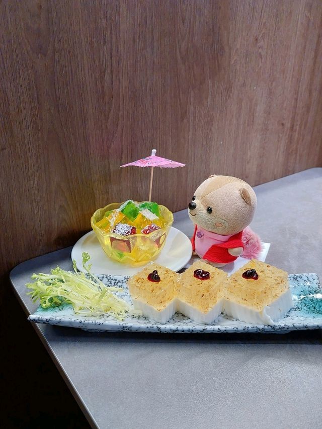Lu Ding Ji has opened in Mong Kok, and I finally have time to eat there. The shop is located on the 5th floor of Chong Hing. It has a simple black style and a Brick Bear where you can check in 📸. The main purpose here is to check in. Food is ordered by scanning a QR code. During the day, we eat dim sum, Sichuan cuisine and Japanese food, and at night, we eat pickled fish and hot pot. - ▪︎ Bear Milk Tea|Bear Lemon Tea HKD$24 The design is attractive and worth checking in, so click here to try it out. Bear ice is made from beverages, so there is no need to worry about it becoming watered down due to the melting of ice cubes😚. The milk tea has a sweet and fragrant taste and a smooth and sweet texture. Lemon tea has a rich color and tastes sour with a hint of sweetness, which is thirst-quenching. - ▪︎Golden Fresh Shrimp Dumplings HKD$19.8|Wild Mushroom Fresh Shrimp and Vegetable Dumplings HKD$30 Both dumplings are crystal clear, the shrimp dumplings are large and plump, decorated with gold foil, and the meat is sweet and refreshing😎. The vegetable sprout dumplings are attractive in color, and the fresh shrimp meat and vegetable sprouts add a chewy texture. - ▪︎BBQ pork buns with oyster sauce|Anxia Salted Water Corner HKD$26 My family loves to eat dim sum, the BBQ pork buns are large and slightly sweet, and the texture of the buns is soft😎. The salted water dumplings are crispy on the outside and soft on the inside, with a lot of ingredients inside and a rich overall taste. - ▪︎ Steamed Spare Ribs with Black Bean and Garlic HKD$28|Chicken Feet with Sauce HKD$30 A must-order dish when eating dim sum, the spare ribs are tender and have a half-fat and half-lean texture. The texture of the chicken feet is soft and smooth and easy to bite. The flavor is richer and slightly spicy, which is quite delicious. - ▪︎Pomelo honey osmanthus coconut milk cake HKD$26|Nostalgic coconut jelly HKD$24 There are jelly candies from childhood memories here, so I have to order some to eat haha. Although it has a simple taste, eating it is a feeling☺️. The coconut milk cake is very fragrant, with the sour and sweet taste of grapefruit honey, and it is not too sweet. - 📍Lu Ding Ji 5th Floor, Chong Hing Plaza, 593-601 Nathan Road, Mong Kok #Lu Ding Ji #Chong Hing Plaza #Dim Sum #Mong Kok #Mong Kok Food #Register for Hotel Test Sleeper #Register for Cruise Test Seater #Register for High Speed ​​Rail Test Seater
