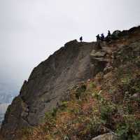 #Winter Travels Christmas holiday is a time to relax. Although the weather today was a bit gloomy, there was a little rain, and it was a bit cold, it did not hinder our hiking plan which we had planned long ago. Our group of more than 10 people set out from the Fei'e Mountain Observation Deck, walked across the majestic and steep Fei'e Mountain, and then climbed down the steep Suicide Cliff using our hands and feet. Infinite beauty is on the dangerous peaks. This is a little hiking challenge! #Good Places to Go in the Suburbs