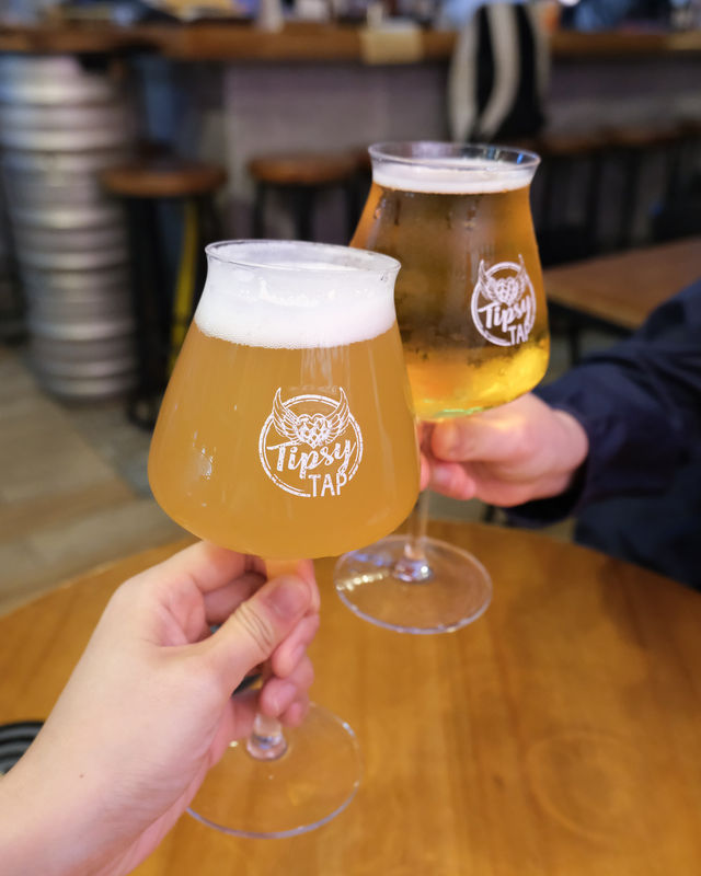 Have a beer with friends after work, it feels cool 👍! This little shop is not on the main street~ There are craft beers from all over the world 🍺, and of course there are also Hong Kong products~ Because my friend doesn't drink much alcohol~ I wanted to try strawberry or litchi 🍓, but they sold out 🤷‍... So I tried this Mango & Pomelo🥭~ Because it's cider, it's more refreshing~ I tried another of their exclusive craft beer Tipsy GPT 2.0😋~ Because it's an IPA, it tastes fresher~ Somewhat floral and vanilla scent 🌼🌱~ They don't have much variety of food, mainly snacks with wine~ This cheese crab meat stuffed mushrooms are stuffed with crab meat🦀, and then baked with cheese🧀~ The cheese flavor and the freshness and sweetness of crab meat are delicious🍄~ This Tipsy chicken wings themselves are spicy🐔, similar to Buffalo sauce~ But the chicken wings are fat and thick, so very juicy~ I'll even squirt juice when I pinch it💦! I personally don't like blue cheese sauce, but my friend ate it deliciously😂~ You can drink beer, why don't you eat fried fish and chips 🐟🍟? The skin of the fried fish is thin and crispy, the fish meat is very smooth~ The fried fries are very crispy 🔥, and you can also add butternut fries or black truffle fries for an additional fee 🥔~ There are not many places in Hong Kong that specialize in craft beer, and even fewer that drink instant beer🤏~ I tried both this time and they are both good. Next time I want to drink the lychee flavor 🥺~ 📍Tipsy Tap G/F, 5 Constantine Road, Tsim Sha Tsui #TipsyTap #HKBAR #bar #foodphotography #western food #relaxation #food tour