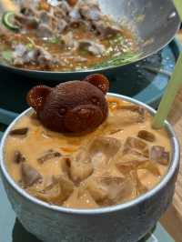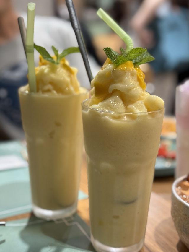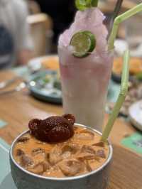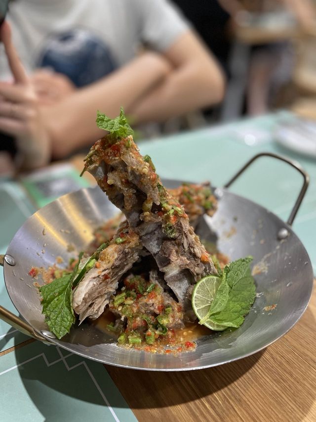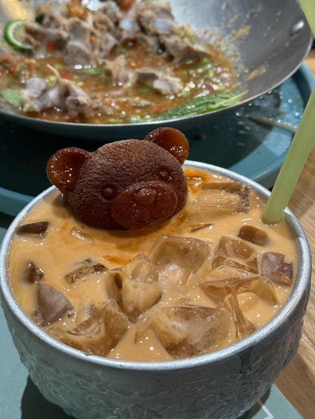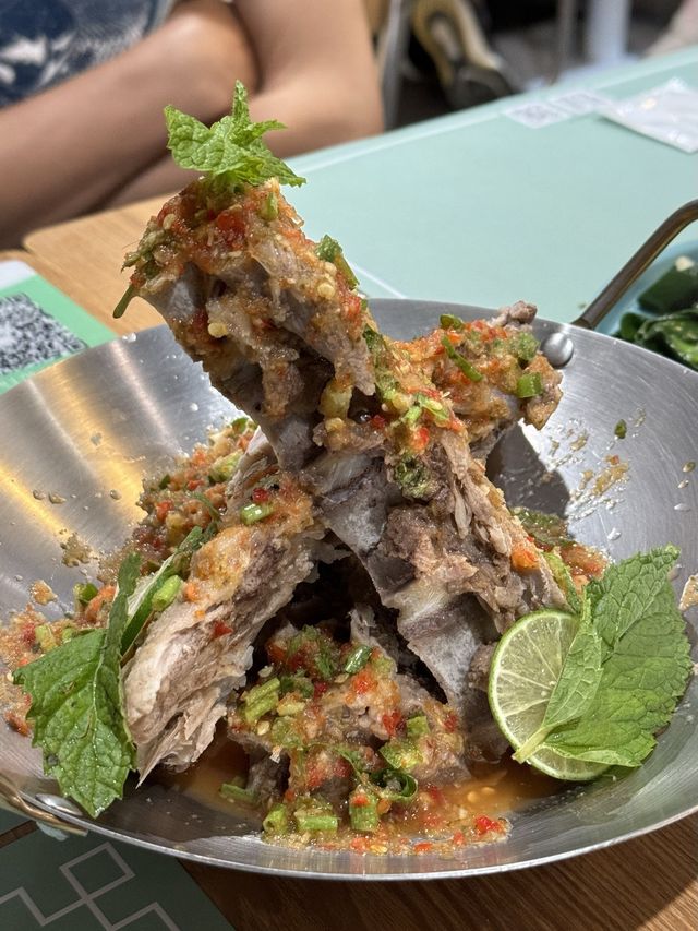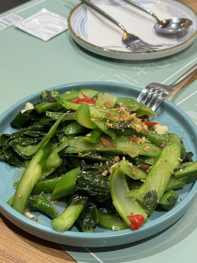 The second time I visited the Thai restaurant, in addition to the fresh and comfortable environment, the wooden tables and chairs with mint green, added some plants🌿. The staff service is very friendly, the meal preparation is very thoughtful 💕, tonight try other dishes 🇹🇭, order with self-service QR code ~ 🌋Volcano Pork Ribs (Small) $108 The majestic pork spine mountain, like a small volcano. After the pork spine is grilled, it is topped with a full Thai spicy sauce. Once it is served, you can smell the aroma of lime, chili, lemongrass, etc., very fresh and fresh✨. The meat is tender and full of fat, and the sauce is very appetizing. It is even more delicious to eat with hand-torn meat😋. 🦪Thai Fried Oyster Cake $98 The large fresh oysters are very fresh, fried with egg batter until golden 💛 Very attractive, the egg cake is tender, with Thai spicy sauce to eat more tasty, the bottom is also padded with some fat sprouts, more taste. 🍢 Choose your own satay skewers 6 skewers $98 We chose 3 pork 3 chicken skewers, grilled just right, with homemade peanuts 🥜 ​​satay sauce more delicious, slightly spicy, multiple taste enjoyment 😋. Pork🐷 - The pork is tender and lightly juicy Chicken🐥 - The chicken legs are also tender, locking in the juices, not very dry and soft 🍆Pepper and Salt Eggplant Stuffed Shrimp Jelly $88 Freshly fried eggplant shrimp paste, there are 4 large pieces. The eggplant is fried like a smiley date with shrimp paste. It has a thin layer of crispy batter and is very dry. It feels very dry without oil 🇹🇭Thai Fried Phnom Penh Noodles $76 Stir-fried with sweet and sour sauce with chicken, dried tofu and sprouts, fresh golden edge stir-fried bouncy and juicy, served with a combination of crushed peanuts, chili powder🌶️ and lime is the most delicious😋. 🥬Thai Stir-Fried Mustard $78 The slightly spicy mustard is refreshing and tender 🐻Thai Bear Iced Milk Tea $35 Bear tea ice soaked in milk tea, very cute, used to take pictures essential📸, because it is tea ice is not afraid of diluted. Thai milk tea base, very rich and smooth, not too sweet, very good to drink🤤. 🥭Mango smoothie $38 Decorated with fresh mango pieces and mint leaves, very thoughtful🫶🏽. Mango and mango juice are beaten into a smooth smoothie, not too sweet, good to eat and relieve the heat, very satisfied after drinking 🥰. 🍋Lime shake $38 Almost fooled by the pink appearance, unlike the usual white, lime soda beaten smoothie, not very sour, very thirst-quenching! ❣️ We unknowingly sat for more than 2 hours, the clerk did not rush away to hand over the table, suitable for chatting and eating ~ 📍Lost in Thai Store Location: Shop B, G/F, Wan Nien Building, 96-100 Prince Edward Road West, Prince Edward Average consumption per person: ~$200/person Must-try: Eggplant stuffed shrimp jelly | Satay pork skewers | Mango shake | Thai milk tea Return Index: 😋😋😋😋😋 #Greater Bay Area Attractions #Hong Kong Food #Hong Kong Restaurant Recommendations #HongKongThai #HongKongThai #PrinceFood #PrinceRestaurant #LostInThai