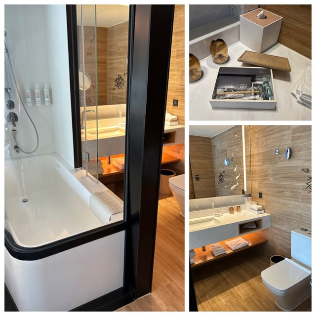 [Marriott Ocean Park Hong Kong, a family resort full of ocean atmosphere] 🐳We went to Staycations with our sister and stepmother family again. Because we have an "Unlimited FUN Admission Pass", we will try to stay at the "Marriott Ocean Park Hong Kong" and enter Ocean Park. 🐠 Once we arrived, we were attracted by the giant fish tank in the hotel lobby, and encountered the time of divers feeding the fish, several little boys were excited to watch. 🛌 The hotel arranged adjacent and adjacent rooms for our three families, we went to check in at 11, saw no one, but waited a long time to complete the check in, although pre-registered, but to 3 need to go to the queue to get the room card, the waiting time is very long. 🫧Our hotel room has two double beds, enough for 2 adults and 2 children to sleep together, with a large bathtub, 4 children together to play bubble bath have loose. The sister’s room is a double queen bed with an extra baby bed and a long sofa. 🧃Drinks and snacks in the room are free, and many bottles of water were given, which is enough to drink without boiling water. The hotel is only a few minutes away from the metro station, where there are 7-11 and Hua Yuyu and others where you can buy supper snacks, but they will close around 7pm, so reserve your time! 🧩 We went to the room to rest for a while to explore the hotel facilities, children can go to the "children's playground" to play, inside there are small boat-shaped climbing facilities and a small amount of toys, but it turns out that the game room does not have a slide, so the children played for a while. 💦Around 4 o'clock to swim in the pool, this hour is just right, not very sunny, the hotel swimming pool is very large, children's play pool has a surprise, there are two sets of slides, children have a lot of fun. (The next article will introduce it in detail) 🍭At night, we can play bubble bath + snack all-you-can-eat in the hotel room bathtub, and it’s supper time for adults after the children sleep. 🌈 After check out the next day we went to Ocean Park to play, this Staycations had a lot of fun! Looking forward to visiting again next time! #parentblogger #weekendtrip #parenthotel #staycationhk #hotelstay