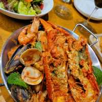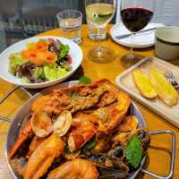 Wooden style warm pet friendly restaurant must eat delicious hand-cranked seafood platter