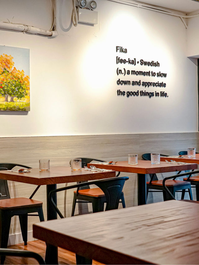 Restaurant: Fika (Tseung Kwan O) Address: G/F, 24 Hang Kou Village, Hang Kou, Tseung Kwan O I recently went to an Italian Bar and Restaurant in Hang Kou Village near Tseung Kwan O Hospital - @fika.hanghau Eating, Fika in Swedish means enjoying and cherishing the slow time and beautiful things 🇸🇪, sometimes being able to take time to eat with friends and family, sit down and talk and drink a cup of coffee ☕️, eat dessert, afternoon tea, are in a quite Chill quite Relax life, compared to the busy and high-pressure work rhythm in the hospital is really different🏥 Fika focuses on Italian Fusion dishes, while offering a variety of steaks🥩, wine🍺, Cafe delicacies🍽, they change the menu once a month for lunch, hoping that customers will have new surprises and new food to try even if they come again🤩, including using seasonal ingredients to provide the freshest food, in order to bring the best food to you👍 The restaurant is in Pet friendly, the day I ate, I saw a customer bringing a super cute puppet cat over to eat🐱, the restaurant is not big but the seating is quite comfortable, playing some pop songs plus Friendly staff, creating a quite relaxed and comfortable environment🥰 ✝️ Pan-fried lamb chops with new potato wedges and stir-fried mixed vegetables $138 Ordered their lunch set newly launched pan-fried lamb rack, in addition to including Japanese soup or salad 🥗, there are six choices of drinks, I chose the tea bag brewed peach tea. In addition to salad vegetables and cherry tomatoes, the salad also added some Seasonal sweet peaches 🍑, with lime oil vinegar sauce sour and sweet, quite appetizing. There are 3-4 pieces of lamb rack🐑, depending on the thickness of fat and thin and decide how many pieces, the portion is more than I imagined, the heat is controlled quite well🔥, the outer layer is burnt and cut inside pink and juicy and not chewy💦, sticking a little fat with a light lamb aroma, plus vanilla to eat more fragrant🌿. The side dishes include savory potato chips with skin and stir-fried mixed vegetables: broccoli🥦, cauliflower, jade melon, corn cobs. After eating, you are quite full😋, even if you are not full enough, you can add $28 for dessert🍰 PS People who work in Tseung Kwan O Hospital can get 5% discount when they come to eat😍