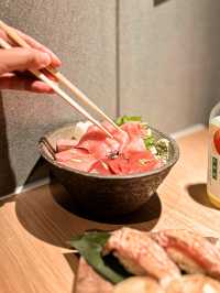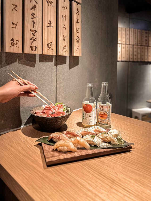 𓆃 𓆃 The famous standing sushi restaurant "Uogashi Nihonichi" has 29 branches in Japan. Its first overseas branch is located in Hong Kong, at AIRSIDE in Kai Tak. It mainly features Japanese seasonal sushi, special rice bowls and chef-created dishes. We carefully select fresh ingredients to bring our customers the fresh taste directly from Tsukiji Market in Tokyo. 𓆛 Grilled Sushi Set The sushi set includes right-mouthed fish, scallop, toro and pond fish. What I appreciate most is the firm and refreshing pond fish, and the plump and delicious scallops! When serving the dishes, the chef smiled and carefully explained each ingredient, being friendly and attentive. 𓆛 Three-flavor tuna bowl The three flavors of tuna are large tuna, medium tuna and red tuna. Whether it's the firm and chewy red meat, the medium toro with just the right amount of fish oil and fragrance, or the fat and melt-in-the-mouth large toro, you can taste them all at once. Don't miss it if you like tuna. 𓆛 Japanese style croaker miso soup with tea stain Japanese style croaker miso soup with tea is made by pouring miso soup over fresh croaker fillets and serving it with rice. Drinking a sip of hot soup in this slightly cool weather makes me feel very happy. 𓆛 Pistachio Ice Cream For dessert after the meal, have a sweet but not greasy pistachio ice cream, which has a rich milky and nutty flavor and is very satisfying. 𓆛 Shinshu Apple Juice + Mount Fuji Yuzu Soda There are also many choices of drinks in the store, including specialty sake, beer, and plum wine. Friends who don’t like drinking can also choose carbonated drinks or fruit juice. The Shinshu apple juice is sweet and fresh, while the Fujiyama yuzu soda is very refreshing. In addition to the freshness of the ingredients, I also really appreciate the interior design of the store. The restaurant mainly serves standing sushi, but they have set up folding chairs at each seat so that customers can sit and enjoy the food, and the chairs can be folded away at other times to avoid wasting space. The shop is not big, but it has a multifunctional hand-washing machine and wet wipes for every customer. It is very hygienic and considerate, very impressive. 𓆃 𓆃 📍Shop G001, G/F, AIRSIDE, 2 Concorde Road, Kai Tak, Kowloon City #weekendtrip #Kai Tak food #airside #Hong Kong omakase #sushi