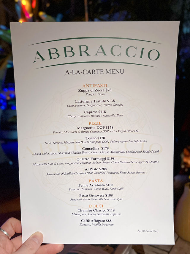 #Sign up for a local experience tester This Italian restaurant is located in Central, near the cultural and artistic mecca Tai Kwun, and specializes in authentic Italian cuisine, which is prepared by foreigners themselves. The store is spacious and comfortable, and the terrace seats offer a great view of Tai Kwun, creating a romantic atmosphere that is perfect for dates or large gatherings. . 🔸Pumpkin Soup - $78 The thick pumpkin cream soup is smooth and delicate, very sweet and delicious. . 🔸Tonno - $178 The traditional stone kiln made Naples pizza, the edges are crispy with a charcoal aroma, the center of the crust still maintains a soft texture, covered with dense tuna shreds, DOP certified buffalo milk mozzarella cheese with a rich milky aroma, and also herbs, onions and tomatoes, etc., very rich. . 🔸Pesto Genovese - $188 The chewy and bouncy pasta is just the right amount of soft and firm, covered with Italian basil pine nut pesto, full of unique herbal freshness. . 🔸Tiramisu Classico - $118 Sprinkled with extra-strong chocolate powder, the Mascarpone cheese is smooth and delicate, and the moist ladyfingers are full of espresso, with rich layers. . 🔸Coke Zero - $45 In addition to a variety of red and white wines and beers, there are also juices and sodas available. ------------------------- Abbraccio Address: 5/F, Ka Shiu Commercial Building, 75-77 Wyndham Street, Central #hkfoodie #hkfood #hkrestaurant #hkfoodblogger #hkdaily #foodrecommendation #hongkongfood #hongkonggoodplaces