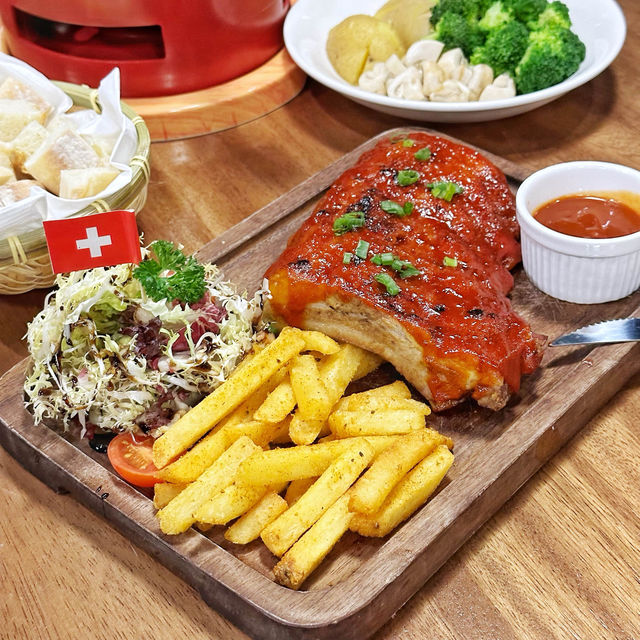 ❄️Winter is the time to eat hot pot😎, in addition to Chinese hot pot🍲, Swiss cheese hot pot🫕 is also another good choice! To eat traditional 🤩 Swiss cheese fondue, of course you have to come to this 🇨🇭 Swiss restaurant! There are two kinds of pre-meal buns 🥖, warm and fluffy ☺️, the quality is good 👍. The 🇨🇭 Swiss cheese fondue 🫕 here is quite authentic in taste, with a 🥃 wine aroma in your mouth, hot and delicious 🥰. 🫕Cheese fondue will come with a basket of 🥖 bread crumbs, each one absorbs all the 🧀cheese sauce, is the perfect match😍! In addition, you can also add different 🤤 ingredients, we chose 🥔 potatoes, mushrooms 🍄 and broccoli 🥦, each with its own flavor is definitely a must-eat for 🧀 cheese lovers! In addition to 🇨🇭 Swiss cheese fondue 🫕, there are also a variety of different flavors of 😋 main course, we chose grilled 🇪🇸 Spanish pork back bone 🍖 with BBQ sauce, and served with salad 🥗 and crispy fries 🍟, plenty of portion! The pork 🐖 meat back bone is super fluffy and thick 👍, the BBQ sauce is very sweet, the 🍟 French fries can be ordered in addition to BBQ sauce 😊 but also cheese fondue 🫕 to eat! The 🍮desserts here are quite unique, their homemade 🗽New York🧀 cheesecake🍰 is smooth and cheesy, and the presentation is beautiful🤩 It is also served with different fruits🍓, it is definitely full of sincerity🥰! Swiss restaurant Address: 2/F, Golden Wheel Skypark, 68 Tin Hau Electric Road #swissrestaurant #lefarinetrestaurant #lefarinet #lefarinethk #North Point Food #Tin Hau Food #meal #butter bread #swiss cheese fondue #swiss #swiss #cheese fondue #cheese #hot pot #hot pot #bread crumbs #potatoes #mushrooms #broccoli #spanish pork back #pork back #pork bone #babyback ribs #cheese french fries #bbqsau dessert