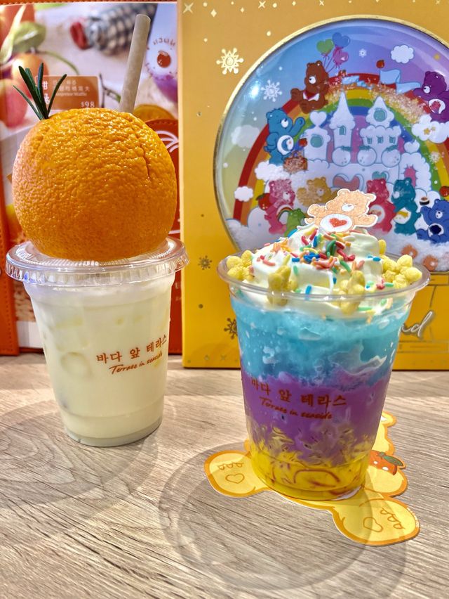 Recently, Terrace in seaside and Care Bears launched a limited-edition dining theme "Care Bears in Terraceland" 🐻🩷💙💛💚💜 I came to Terrace in seaside Shatin store tonight. The menu offers limited-edition staples, desserts, and drinks. Care Bears are so cute! 🐻🩷 If you like cute #carebears or like to check in on food, you must go! 🌈🩷🥰 Spreading Love Rice Roll $98 The rice is mixed into a purple and blue gradient Korean rice roll, which is eye-catching and dreamy! 💜💙 The rice roll is colorful with eggs, carrots, and cucumbers in the fillings! 🌈🥰 Bear head cockle bibimbap $188 Care Bears cute bear head Korean hot sauce bibimbap🐻, slightly spicy, with spicy and tasty Korean chili powder and slightly sweet hot sauce cockles, just right! 😋🔥 Jeju Citrus Yogurt $68 Signature Drink, with a whole citrus peel on the cup, every sip is a citrus juice yogurt drink with a hint of fruit pulp🍊 Starbuddies Purple Sweet Potato Pumpkin Ice $52 The top layer is sweet cream, honey stars, and colorful sugar needles, the middle layer is sky blue and purple sweet potato smoothie, and the bottom layer is pumpkin smoothie and red cendol🤍💙💜💛♥️ Care-a-lot Rainbow Paradise Cake $68 Seven-color Rainbow Cake🌈🍰📸 The cream has a thick texture and rich creamy aroma, paired with a moist rainbow sponge cake, fresh berries, and pink cream Care Bears Rainbow Waffle $118 Once you take it in your hand, it turns out to be a big portion! The waffles are crispy on the outside and soft on the inside, paired with pink cream 🩷💙 _______________ Terrace in seaside (New Town Plaza Phase 1) (Shatin) Shop 609, L6/F, New Town Plaza Phase 1, 18 Shatin Centre Street, Shatin _______________ #hkfoodie #hkfoodies #hkfoodblogger #hkfoodblog #hkkol #room_hoster #2024Travel Wish