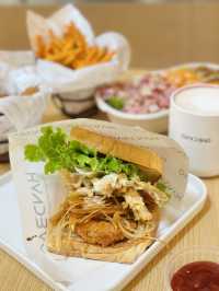 🥪 Japanese and Korean Light Meal - Stuffed Sandwich with Your Choice of Salad 🍀 As the new year arrives, embrace a smooth life by praising more and complaining less. Live a simple life, taking steady steps one by one, and you'll find your path broadening. 🦐🦀 Shrimp and Crab Teppanyaki Sandwich $68 Looking for a light meal but still wanting something more substantial? Teppanyaki sandwiches, popular in Japan and Korea in recent years, are a great choice. The Shrimp and Crab Teppanyaki Sandwich is filled with crispy soft-shell crab, crayfish salad, kale salad, cucumber, and romaine lettuce, topped with tartar sauce and Russian mayonnaise. The sweet lettuce adds a refreshing touch, creating a novel and rich combination that's both filling and delicious. If you're sharing with two women, order one to share and try different flavors. 🐔 Crispy Fried Chicken $32 The golden, crispy fried chicken nuggets are slightly spicy and incredibly flavorful. 🍟 Tomato Sour Cream Homemade Hand-Cut Fries $32 The hand-cut fries are infused with tomato sour cream powder, adding a slightly sour flavor that's appetizing and delicious. 🥗 Choice of Salad - 4 Types ($58) The colorful choice of salads creates a striking visual impact. The mixed salad features German-style roast pork knuckle, smoked honey ham, mandarin oranges, and roasted walnuts, topped with roasted sesame dressing. The sweet mandarin oranges enhance the overall sweetness, making it a highly recommended option! ☕️ Earl Grey Tea Milk Coffee $42 The delicate combination of Earl Grey tea and milk adds a touch of lightness to the coffee. The perfect blend of tea and coffee creates a fusion version of a sweet and sour coffee! 🍽 Restaurant: HAND3AG @hand3ag 🌐Address: Shops 26-27, B2/F, Langham Place, 8 Argyle Street, Mong Kok 🐮 #cowingEatInMongKok #hkblogger #hkbloggers #hkigers #hkkol #852kol #hkinfluencer #foodie #hkfoodie #hongkongfoodie #852foodie #foodstagram #hkfood #hkfoodblogger #camerafood #foodie #foodie #MongKokFood #HAND3AG #SignUpHotelTester