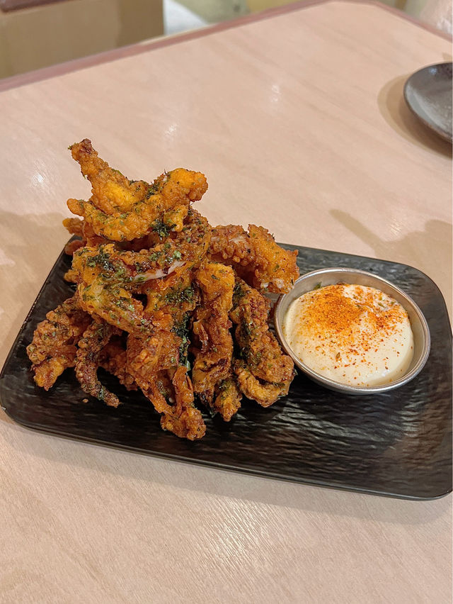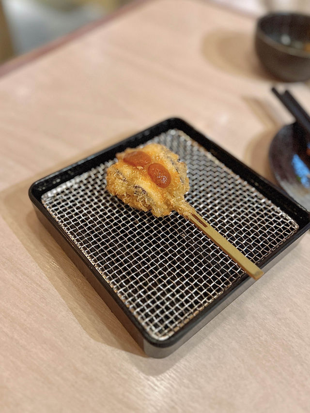 Kafu is located in Whampoa and is a Japanese izakaya🇯🇵. The restaurant's decor is primarily wooden, creating a simple and comfortable atmosphere😌. The menu offers a wide selection of food, mainly skewers🍡🍢. For HKD48, you can choose 2 types of skewers (some require an additional HKD2 or HKD4), which is a great value for money👍🏻. Additionally, we opted for the 2-hour all-you-can-drink package (HKD168 per person), which includes a variety of alcoholic and non-alcoholic beverages🍺. My favorite is the plum wine series, which pairs perfectly with the skewers!😍 Recommended dishes: 🤍Grape Duck Roll Skewers of duck wrapped around grapes😜. The juicy duck combined with the sweetness of the grapes and yuzu pepper sauce offers a unique flavor that's also refreshing and cuts through the richness👍🏻. 🤍Crab Meat Oysters (+HKD2) Fried oysters topped with crab meat, the sweetness of the crab and the freshness of the oysters blend together, creating a rich texture😋. 🤍Seaweed Squid Tentacles (HKD48) The squid tentacles are fried to a crisp, chewy and springy, with a light salty taste of seaweed, very appetizing🤩. 🤍Tiger Prawn Thick Soup Noodles (HKD128) A signature dish of Kafu!!🦐😏 The tiger prawns are large and fresh, with a crispy outer layer made from sakura shrimp👍🏻. The soup base is thick and rich, infused with the sweet taste of tiger prawns, and the noodles fully absorb the flavorful broth, making it very tasty🤤. Kafu (Kafu) Address: Shop G29, Ground Floor, Treasure World (Phase 3), Whampoa Garden, Hung Hom