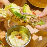 At the end of Ashley Road, I saw this very chill Thai restaurant. The interior is very comfortable and has a holiday feel🏖️ Nail Throw Minced Meat Avocado Mexican Tart The lettuce buns melted into the Mexican rolls 🌮 are innovative enough! The taste is a little spicy, yummy enough. Pasta with Tonkatsu Prawns The two shrimp heads are super big, the spaghetti sauce is tom yum style, with shiitake mushrooms. Thai grilled beef salad Lots of roast beef, the salad dressing is sweet and sour, appetizing. Mango glutinous rice donut An inverted cone 🍦 is placed upside down on top of mango glutinous rice, the presentation is special. Bangkok Made with Whiskey, orange juice, mango juice, lemon juice, ginger beer and cinnamon, the cups and ingredients are carefully arranged. 🛎️ Must-try index: 9/10🔆 📍G/F, 37 Ashley Road, Tsim Sha Tsui #wingwingpiglife #wingwingpiglife_tst 🅆🄸🄽🄶 🅆🄸🄽🄶 🄿🄸🄶 🄻🄸🄵🄴 #Tsim Sha Tsui Food #Thai Cafe #Thai Style #Thai Chill #Thai Good Food #Talk Cafe #Photo Cafe #Hong Kong Thai Cuisine #Mango Glutinous Rice