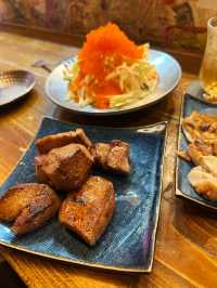 #HongKongAttractions This restaurant I occasionally come with friends to eat, here and traditional Japanese Teppanyaki is very different, do not have to order set package, you can order according to your own dishes, and there are many kinds of food choices, feel more comfortable than traditional Teppanyaki, Causeway Bay this branch is very lively, my place tonight sitting right bar table atmosphere full. ✦Green Apple Crab Seed Salad Crispy and sweet green apple strips plus full of crab seeds, rich and refreshing and appetizing. ✦ Spicy wine frozen wind snails After the refreshing and fresh wind snails were cooked in the mellow and not choking wine, there was a little more spicy aroma, making people unconsciously eat one after another ~ ✦ Crispy fried chicken heart Extremely crispy salted chicken heart is crispy on the outside and tender on the inside ✦ Thick grilled beef tongue Thick-cut beef tongue is charred on the outside and tender on the inside, and the meat inside is tender and tender. ✦ Overnight dried chicken steak Utilizing the dehydration properties of salt, reduce the moisture of the meat while retaining the essence of the meat flavor. Because of the salt savory flavor, no need to specially season the chicken freshness is very rich, the entrance is tender and refreshing without dry and hard taste. ✦ Pork scallion rolls Coriander lovers must try this pork coriander roll. The tender pork loin is wrapped in a lot of coriander. The whole mouth is filled with the oily aroma of pork and the freshness of coriander. ✦ Hong Kong Island Grill Creative Hong Kong-style Hong Kong Island barbecue, the siu cake is added with char siu, shrimp, coriander and sausage, then spread with meat floss, mayonnaise, and some seaweed, the whole cake is more fragrant and tasty, very rich taste. ✦ Iron plate live northern sea mussels Fresh live mussels cut into strips easy to enter, stir-fried together with broth more tender and bouncy, then sprinkled with fried garlic and scallions very tasty. ✦ Hokkaido squid fillet Slightly spicy and soft, the meat is soft and tasty ✦Sake-cooked mussels The oysters are plump and sweet, and the aromatic sake is the perfect match. ✦ The long-standing Ume Shizuku has been matured for ten years The unique ripening aroma and complex plum sweet and sour taste slowly spreads in the mouth ~ Hungry Monkey 📍Shop B, G/F, Midtown, Kim Chao Yang Centre, Phase 2, 1-29 Deng Lung Street, Causeway Bay ☎️(+852) 54089580 •♡•♡•♡•♡•♡•♡•♡•♡•♡•♡•♡•♡• #foodie #food #foodpic #foodphoto #yum #yummy #delicious #tasty #camera eat first #mobile food first #hkfood #Hong Kong food #food #hkig #ighk #hungrymonkey #Teppanyaki #Causeway Bayfood #Causeway Bay