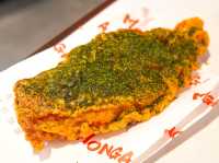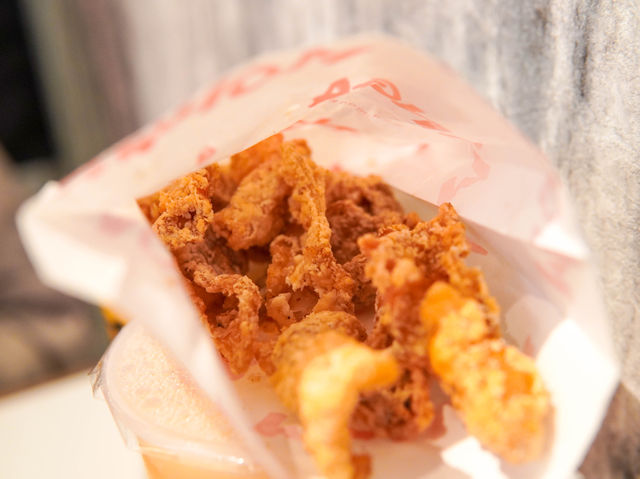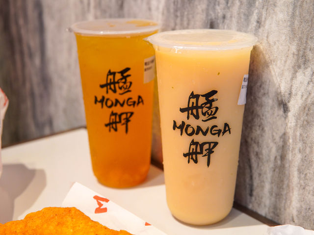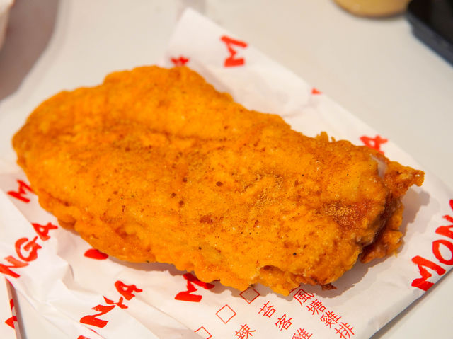 Seaweed Chicken Cutlet/Typhoon Shelter Chicken Cutlet/Cheese Chicken Cutlet Satiety Index: 0/100 The chicken cutlet is thick and juicy when bitten into. The crust is crispy, maintaining its crunchiness to the last bite. Ordered three flavors: Seaweed Chicken Cutlet: Full of seaweed powder, very Taiwanese, salty and sweet aroma. Typhoon Shelter Chicken Cutlet: Hong Kong limited flavor! Slightly spicy and very savory. Cheese Chicken Cutlet: After frying the chicken cutlet, cheese is added on top and baked, giving a slight milky taste. Crispy Fried Chicken Skin Satiety Index: 0/100 Fried until crispy and light. Available in limited quantities daily. Golden Diamond Pineapple Satiety Index: 0/100 This is the best fried pineapple I have ever had. Made with fresh Golden Diamond pineapples. The outer skin is not soggy. The inside is very juicy and sweet. The pineapple also has no fibrous core. For drinks, got Pineapple Green Tea and Yakult Green Tea. With so much food, these two drinks are very refreshing. Monga Chicken Cutlet Address: Shop A, G/F, 24-30 Percival Street, Causeway Bay