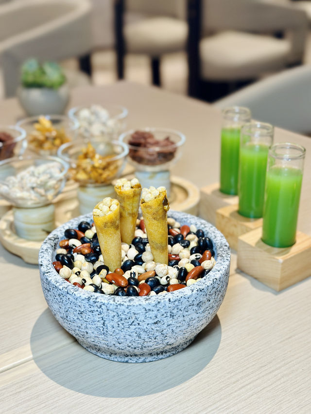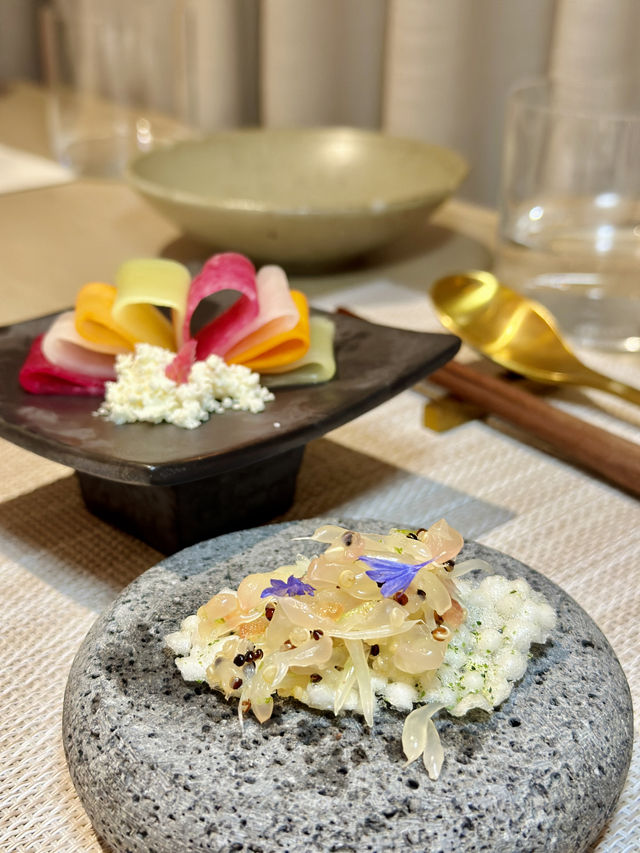 😍 Super exquisite and high-end vegetarian food is the first time to eat, $ 1280 per person twelve dishes, each dish is plated like a work of art, not to eat to go crazy check-in 📸✨! 💫Three cups of snacks Wasabi cashews, soy sauce-soaked grilled fennel, pecans 💫Fresh five elements Similar to five-green juice, a fruit and vegetable juice made with bitter gourd, celery, cucumber, kale, and green apple 💫Mapo|Crispy tube 💫Olive | Screw rolls Not foie gras, but a sauce made of olives, soft and slightly salty, served with gold and silver screw rolls, quite novel 💫Grapefruit|Sago Organic tri-color quinoa, fresh grapefruit flesh, sago crisps plus a small flower garnish 💫Vine pepper | Light marinated vegetables Lightly marinate the asparagus, white radish, carrot, and heart-shaped radish with cane pepper and cut into thin slices. Arrange them into a fan shape. The colors are bright and eye-catching🤩. Add a little cane pepper puree to enhance the flavor, the taste is special 💫 Soy milk | Fried ghost 💫Ice plum | grapefruit peel | sticky rice Fried grapefruit peel, a scheming dish, is usually hard to eat. There are also spicy and sour chicken head rice (i.e. buckwheat) and very beneficial children's vegetables as a pairing 💫 Cabbage | Peach Gum ❎ Fresh Fruit | Yogurt Cookies I usually use peach jelly to make sweet soup or drink, but I didn't expect it to be used to cook soup to nourish my skin 💫 Miao Sour Soup | Watermelon | Saffron 💫 Brown Mushroom | Mouth Grind | Bailing Mushroom One of the most delicious dishes smelled good when it was served. Made with different mushrooms, the brown mushrooms, chicken leg mushrooms, sheep's belly mushrooms, bell mushrooms, and mouth mushrooms have their own unique flavors and are quite blended 💫 Fresh fennel | Tangerine 💫Dry Roast | Snow Swallow | Tofu Snow swallow is another very favorite ingredient, add it to the fried tofu, immediately sparkling 💫 Winter chestnuts | Five grains The heart-warming and nourishing chestnut five-grain rice is smoky and tough, with a rich aroma of chan pi 💫 Winter Honey | Nine Palaces 🤭 Dessert with instructions, nine-square grid Chinese and Western combination, combining fruit, Chinese dessert, Western dessert 💫 Apple | Lily | Top Scholar Tea Round Yuan 📍Shop 2, G/F, Cathay Pacific Hollywood Centre, 1-13 Hollywood Road, Central #lubudsgroup #round #yuan #vegetarian #vegetarian