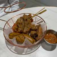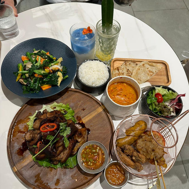 🤍Tseung Kwan O·YOLO🤍 Restaurant name = ``YOU ONLY LIVE ONCE'' I found it interesting when I first heard it 🫶🏻 As a restaurant to change such a meaningful name is quite special The environment is simple and atmospheric, full of space and very comfortable to sit The idyllic decor has some mangrove/plant 🪴wood bookshelf 🪵 The restaurant focuses on Thai fusion cuisine, which is new and creative✨ Also quite cheap 2 large meals with all the following dishes I ate so many choices at once and did not disappoint 👍🏻 💓Dinner set for 2 $228💓 🌈Thai BBQ Platter (Small) Although the size is small but to D is not less There is more than enough for 2 people to share. Too much is a waste🤧 The skewers have chicken/pork/hot sausage/tomato/bone chicken wings The chicken + pork are just the right size and the meat is tender and not tough Tomatoes are very fresh and keep juicy after roasting Spicy sausage is really spicy 🥵 I have to order a cold drink 🤣 The bone-in chicken wings are crispy and delicious. They are perfect with mayonnaise💓 🌈Big Head Prawns Tonkatsu The soup was very filling but was rather spicy except for a large head shrimp There are also some lemongrass/onions🧅/mushrooms🍄 etc Sour and spicy is addictive and appetizing But those who can't eat spicy suggest ordering other meals 🌈Original Thai boneless pork hands Large portions of meat are all deboned, no need to bother The dim sum sauce is seasoned well enough The skin is soft and chewy and full of collagen😆😆 🌈 Garlic stir-fried mixed vegetables The stir-fried mixed vegetables with garlic and minced vegetables has a green color and is very appetizing The sweetness of the mixed vegetables goes well with the aroma of garlic In addition to vegetables, there are mushrooms/carrots🥕/red and yellow peppers Stir-fried until cooked through but still maintains a crisp and tender texture 🌈Butterfly Pea Coconut Juice Ice (Additional +$15) The strong fragrance of coconut milk plus the fresh fragrance of buttercup flowers The taste is more mellow and sweetness is just right Not too sweet to make people bite after bite And the ice is cool and perfect for hot summer days🌞 🌈Pineapple Coconut Special (Additional +$15) Coconut flavor + pineapple sweet and sour flavor blend together Very fresh and pleasant spirit for lifting And the taste is very soft and very easy to drink😆 🌈Mango glutinous rice with ice cream $40 The glutinous rice 🍚 is a little overcooked But the taste is good 😋 plate of bean curd color + coconut juice 🥥 Served with coconut flavored ice cream🍦 It's hot and cold so it stimulates the senses Yummy✨👍🏻 #foodphotography #foodguide #Western food