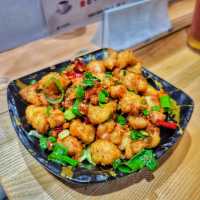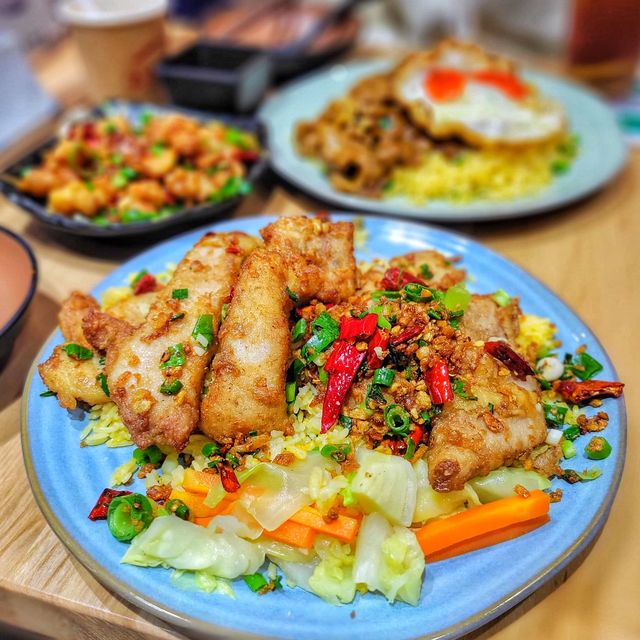 This restaurant has only been open for 4️⃣ months, but it has already received rave reviews. I also visited it when it first opened. I still remember that I had a bowl of Qiankun Golden Wo Crab Roe Fried Rice, which was very memorable. I came here again today and wanted to revisit it, but unfortunately the boss said it was out of season and good products would only be available in autumn🦀 Last time I visited during the dinner hour, there were not many people around. This time I visited on a weekday at noon, and there were a lot of people coming and going. Fortunately, I got a seat after waiting for 5 minutes. Customers are still ordering takeout at the door, it's very lively, and the decoration is quite interesting, with its own mascots Golden Rice Grains and Mr. Shrimp 🦐The main color in the venue is white, with paintings of Disney characters hanging on the wall, showing the childishness. Egg fried rice was originally called "gold wrapped in silver" because the egg yolk oil is golden in color and the rice grains are as white as jade, so the fried rice is yellow on the outside and white on the inside. Later it was also called broken gold rice, which is the main feature of this restaurant. There are also rice and snacks for lunch, and rice noodles are available during afternoon tea, which is considered a diversified meal📔 🍳Secretly made satay beef double-braised pork and egg rice | 7.5/10 Due to the pandemic, various food interest groups have emerged, and the most discussed one is the Satay Beef Interest Group. I have also followed the posts to find food and discovered many good places 🤓 The satay beef is darker in color, but moderately salty. It should be made from fresh beef. The meat is not too firm and hard to chew. It tastes good and comes with the unique preserved radish for a refreshing taste🥓 The most eye-catching one is the Lan Wang fried egg, the bright orange-yellow yolk is tempting, the egg aroma is rich and has no fishy smell, and the edge has a super charred aroma 🍳 🥩Fried and Seasoned Salt and Pepper Pork Chop Rice | 8/10 Another signature dish, limited supply daily, all fresh and fried upon order, it was marked to wait for 15 minutes, luckily maybe there were fewer people ordering when I went there, it was delivered just after ten minutes 😙 The whole plate of rice was piled as high as Mount Fuji, and each pork chop was nearly two fingers wide and palm long, and it was not filled with batter. You could tell at a glance that it was meat. The taste is rich and fragrant when you bite it. It is the top flavor of Hong Kong-style dai pai dong, and the saltiness is relatively aggressive 😋 The fried rice is fried with distinct grains, all wrapped in egg yolk, and looks like fried gold, shiny and shiny, truly making it the real golden rice👍 🦴Salt and pepper chicken cartilage | 8/10 A newly launched snack, the boss's masterpiece, the crispy chicken cartilage on the outside and the crunchy on the inside already has a rich taste, and with the authentic pepper and salt flavor, it is quite addictive 🤤 I can't help but eat it one bite after another.